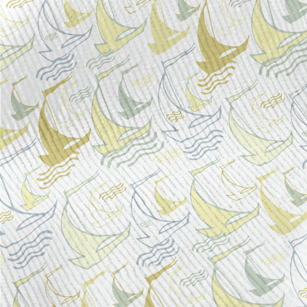 手繪帆船與海浪燈芯絨(幅寬150公分)