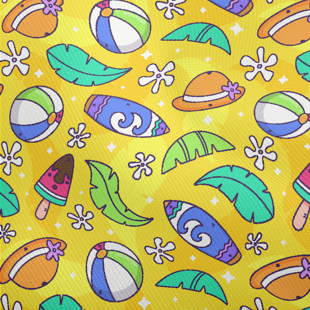 卡通海灘球帽子熱帶植物雙斜布(幅寬150公分)