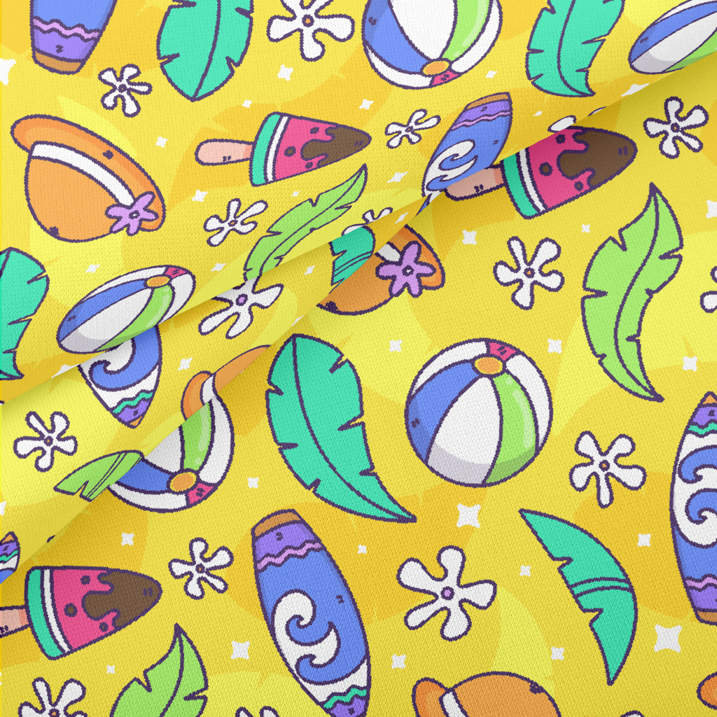 卡通海灘球帽子熱帶植物羅馬布(幅寬160公分)