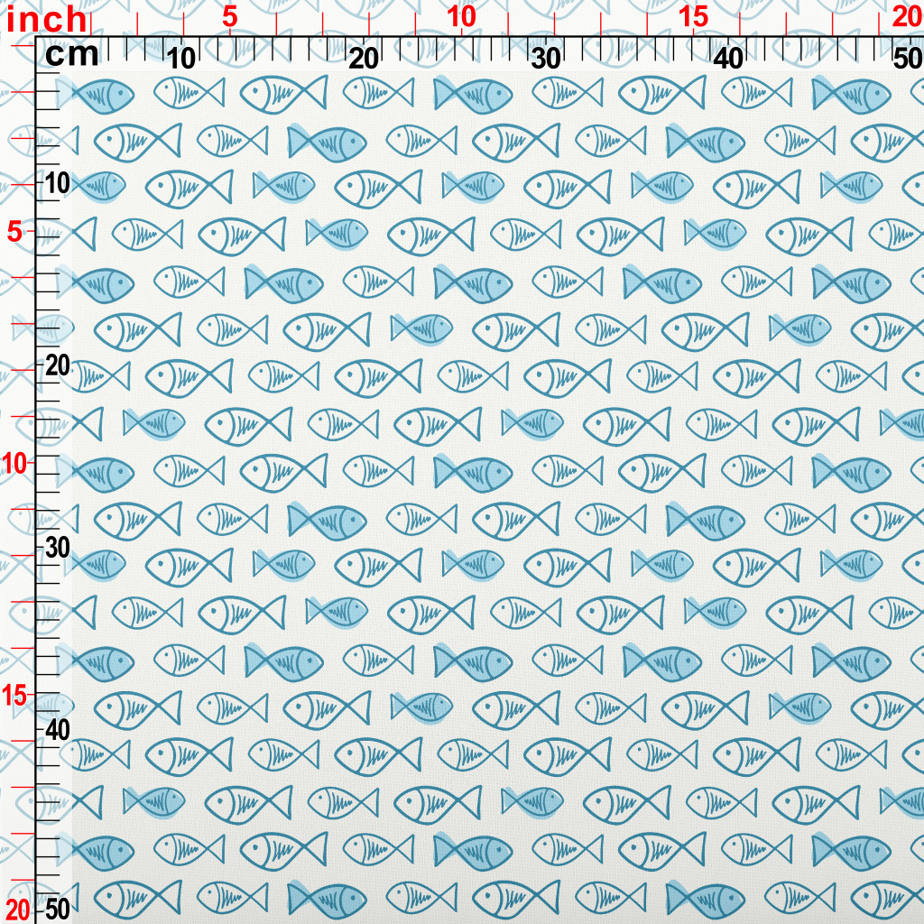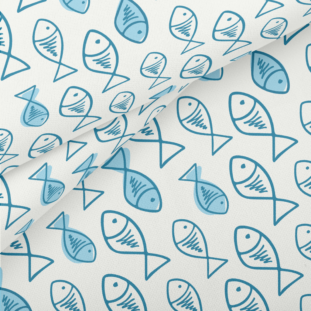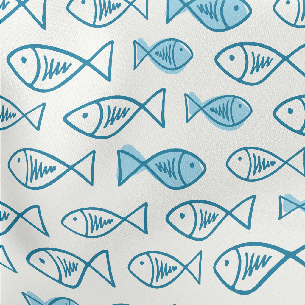 簡潔塗鴉小魚羅馬布(幅寬160公分)