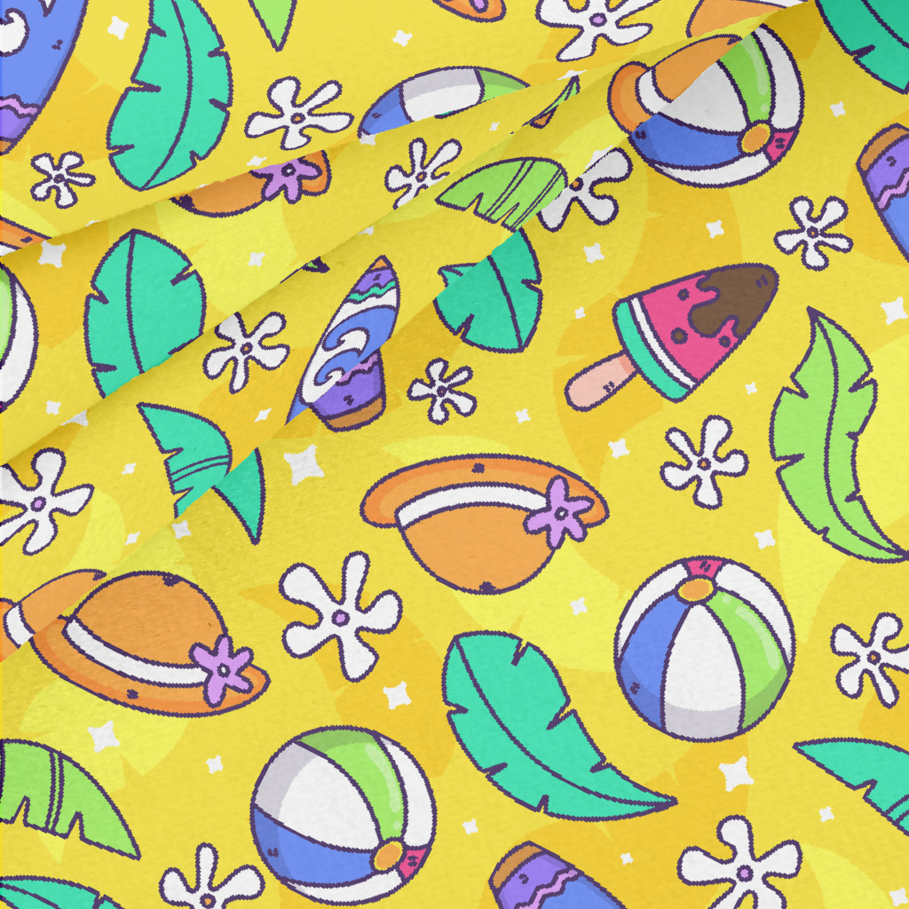 卡通海灘球帽子熱帶植物水晶絨(幅寬160公分)