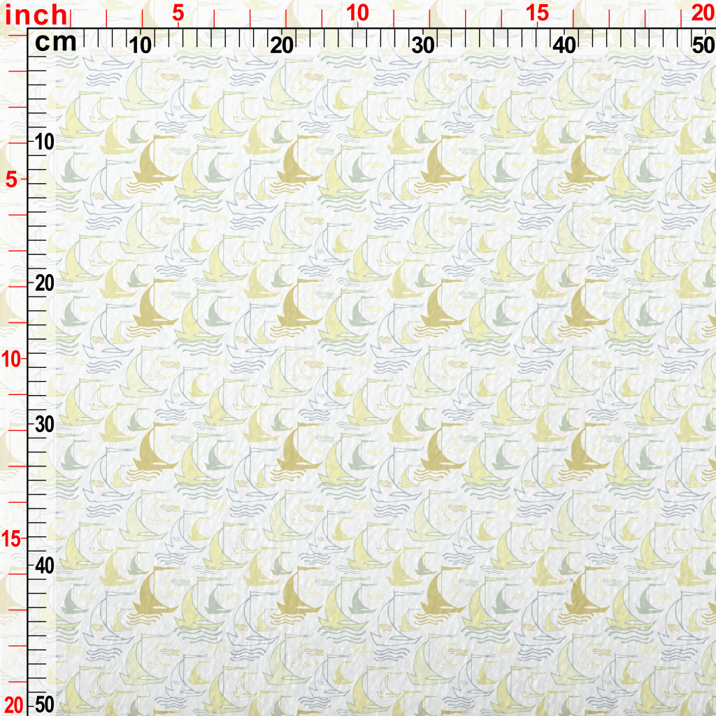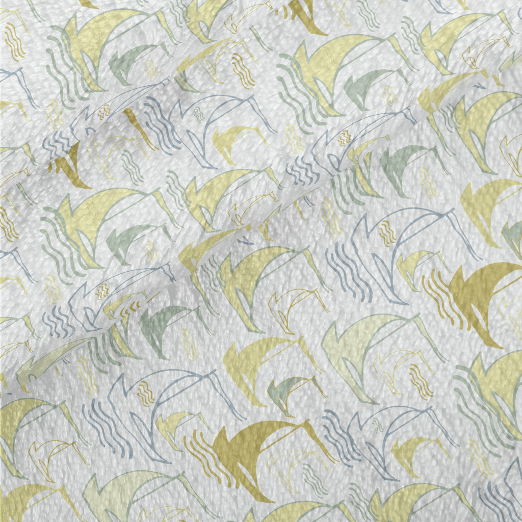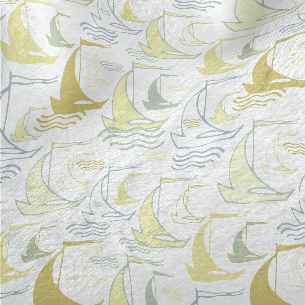 手繪帆船與海浪法蘭絨(幅寬150公分)
