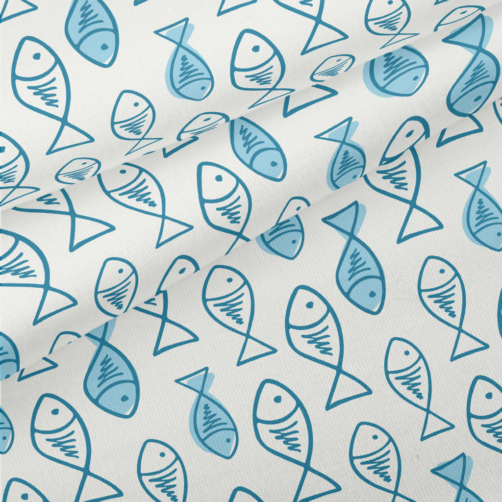 簡潔塗鴉小魚仿棉布(幅寬150公分)