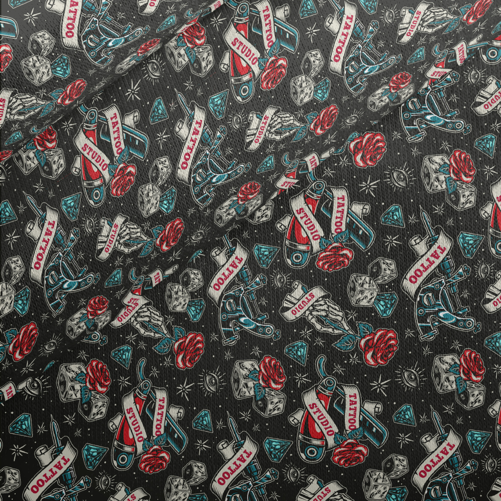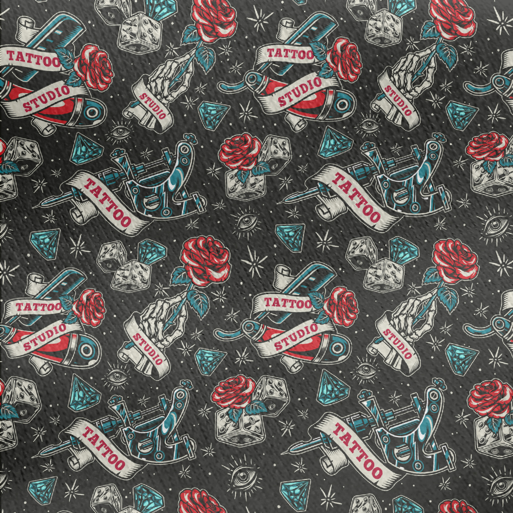 復古紋身沙龍圖案刷毛布(幅寬150公分)