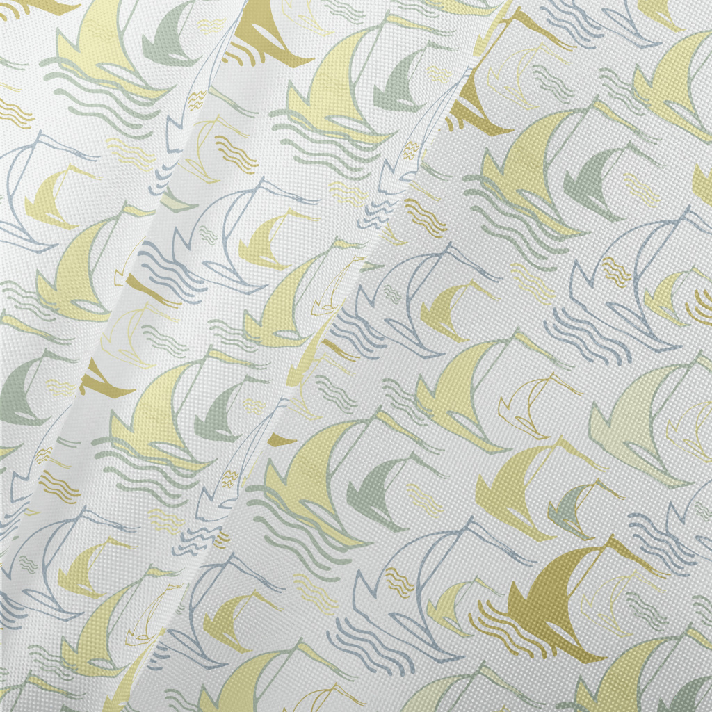 手繪帆船與海浪春亞紡(幅寬160公分)