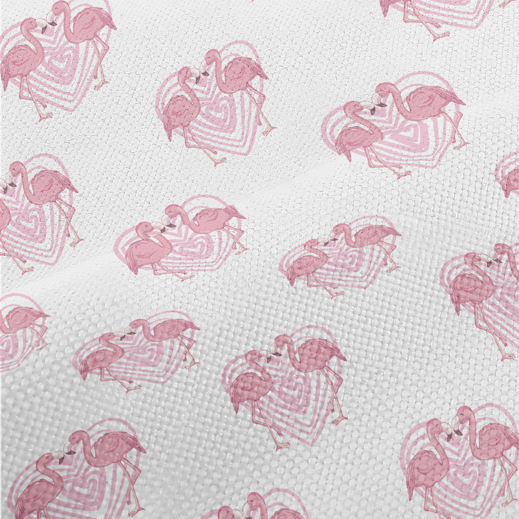 一對恩愛紅鶴與愛心麻布(幅寬150公分)