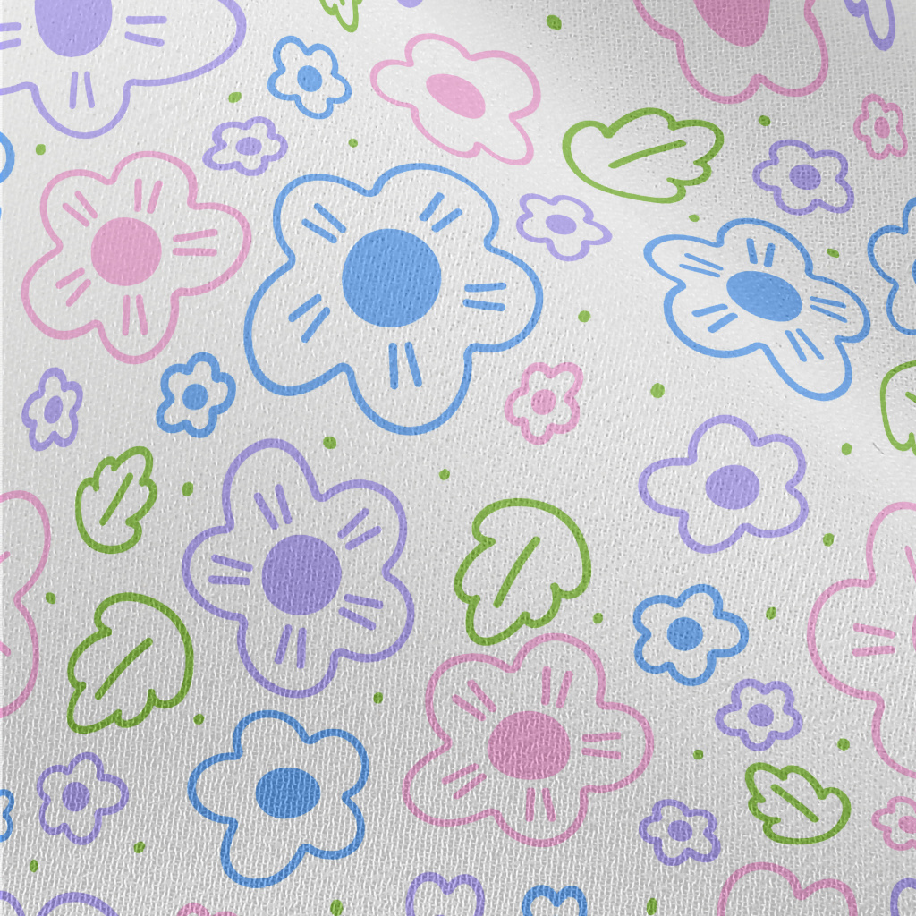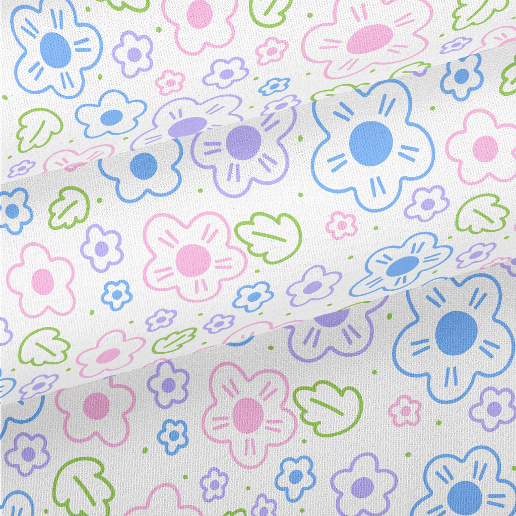 彩色線條花朵和葉子雪紡布(幅寬150公分)