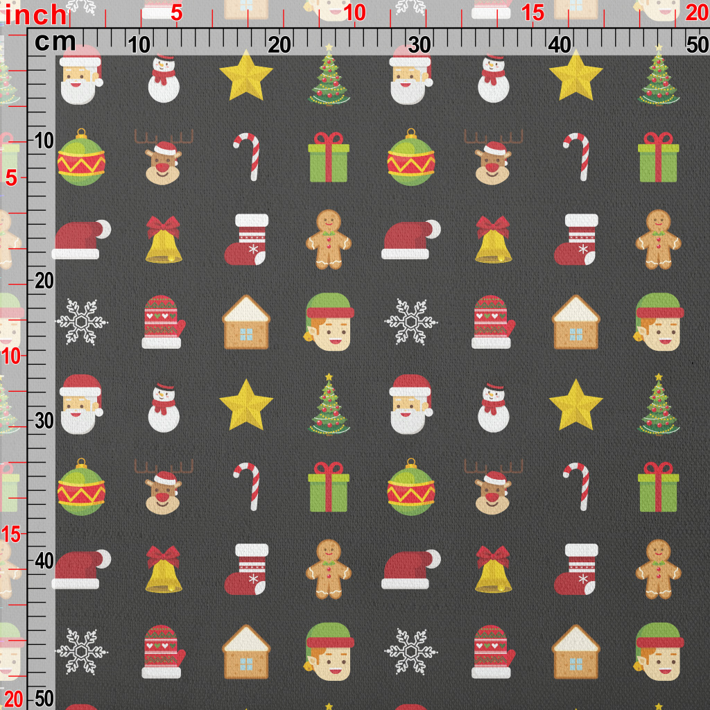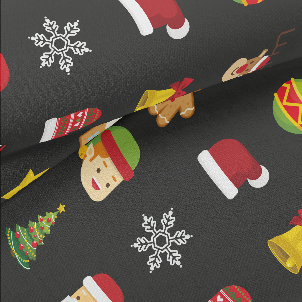 可愛聖誕節圖案竹節麻(幅寬150公分)