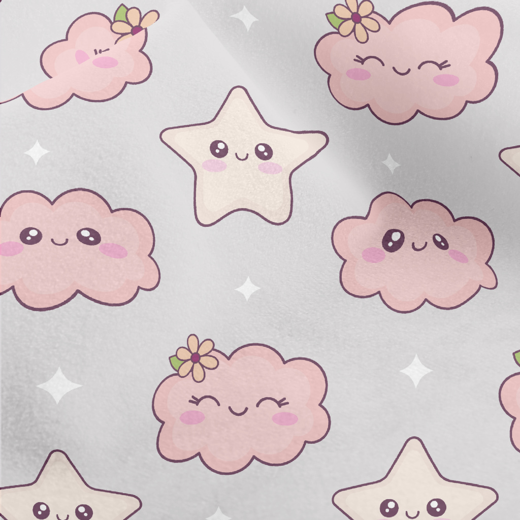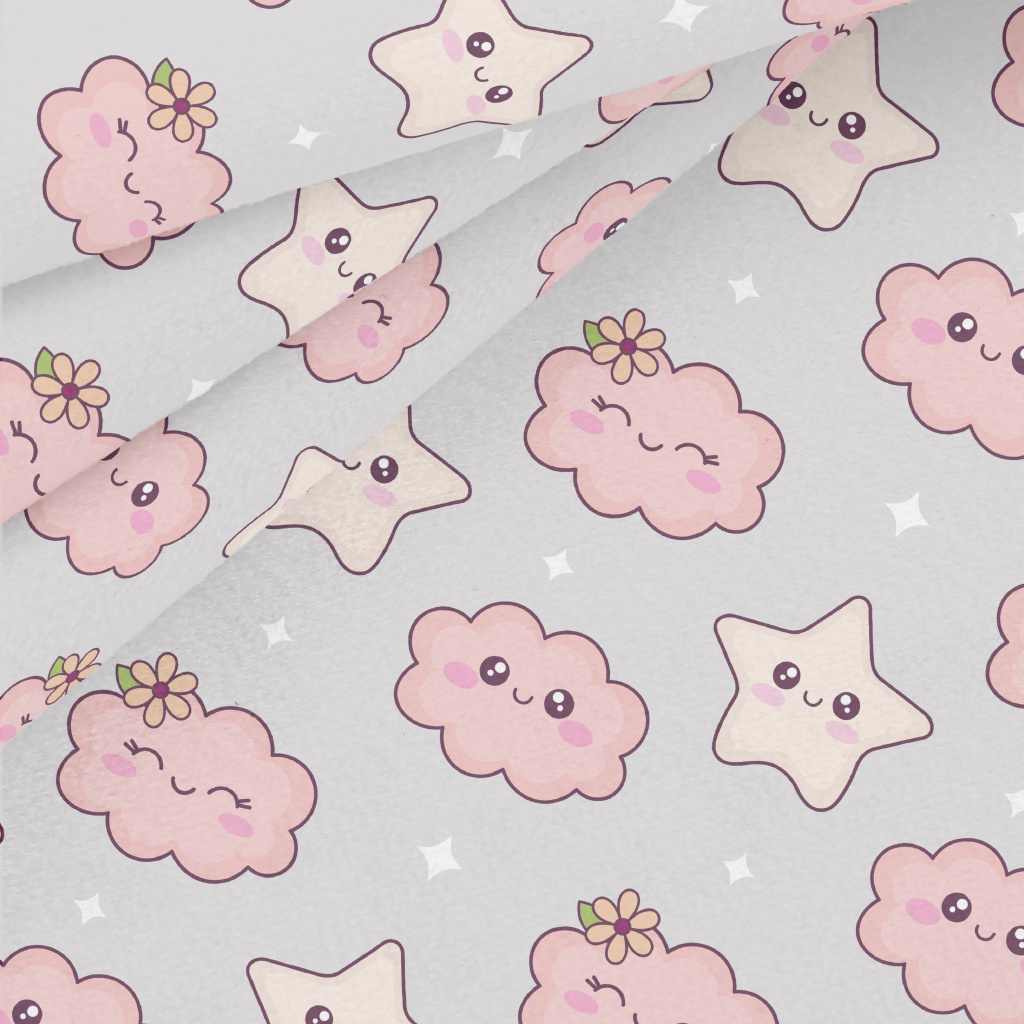 水汪汪雲朵和星星水晶絨(幅寬160公分)