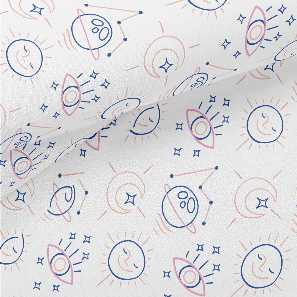 線條星球太陽星座月亮竹節麻(幅寬150公分)