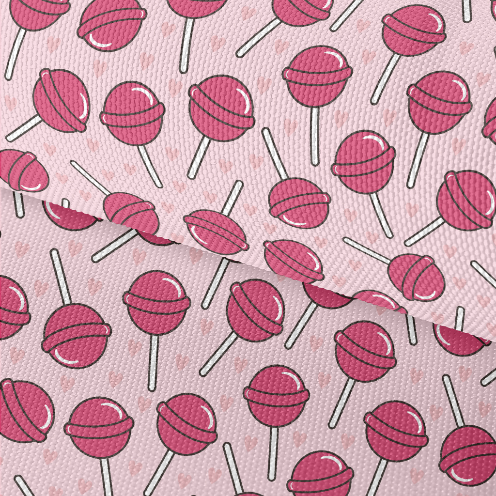 卡通粉色棒棒糖與愛心牛津布(幅寬150公分)