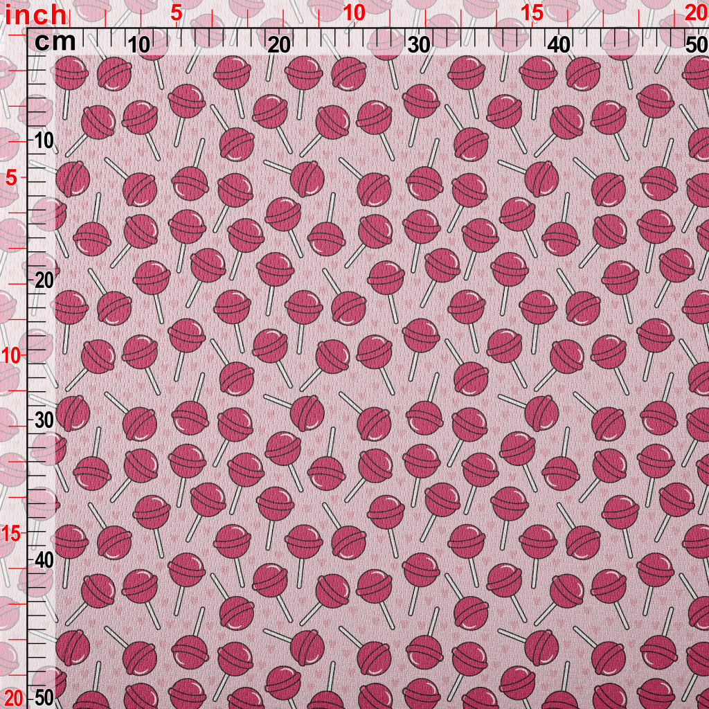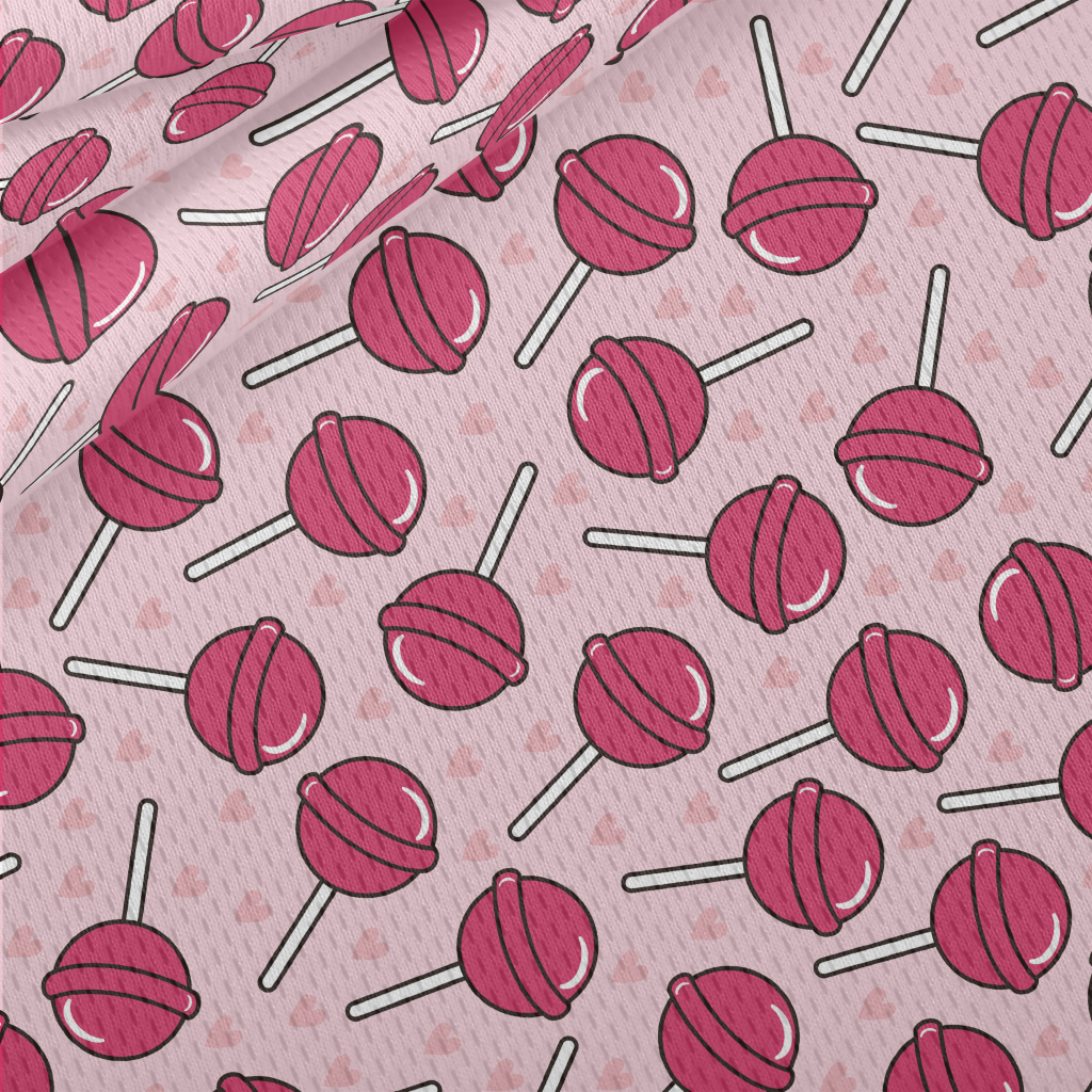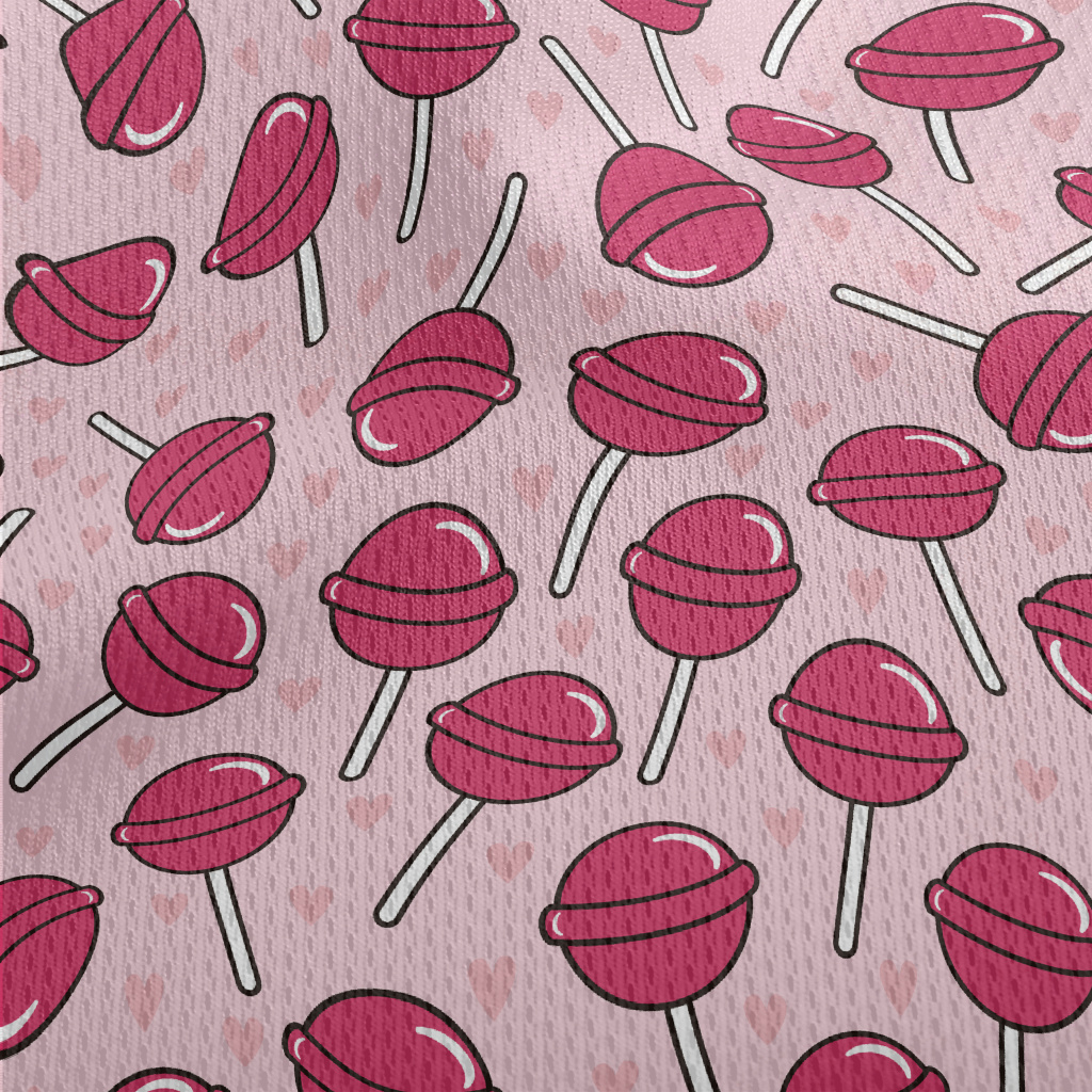 卡通粉色棒棒糖與愛心鳥眼布(幅寬160公分)