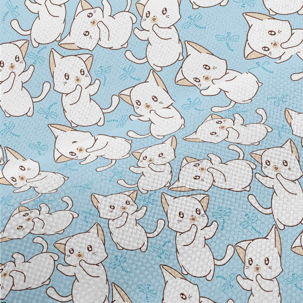 搖擺小貓與蜻蜓麻布(幅寬150公分)