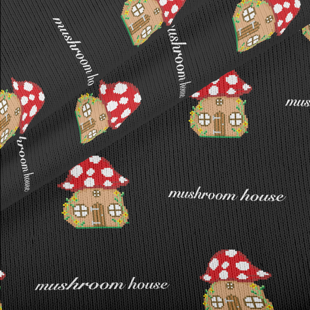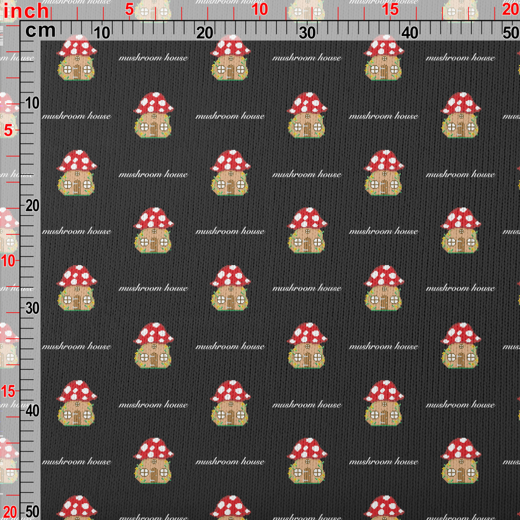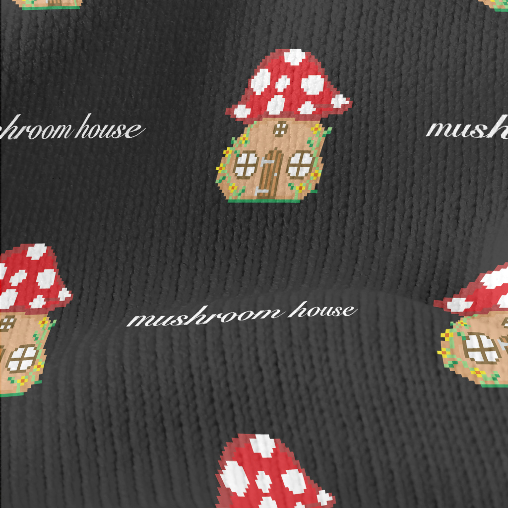 像素卡通蘑菇房屋仿毛衣布(幅寬150公分)
