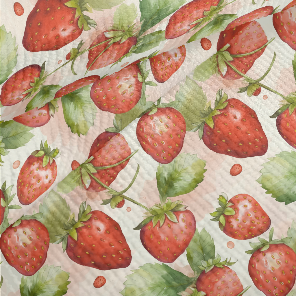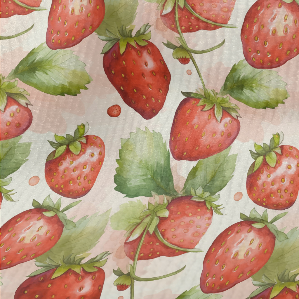手繪寫熟成草莓毛巾布(幅寬160公分)