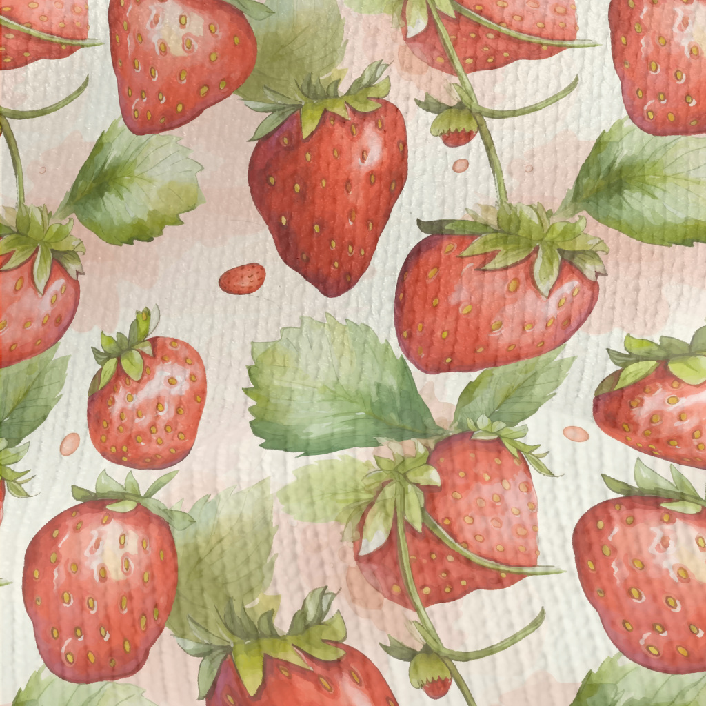 手繪寫熟成草莓仿毛衣布(幅寬150公分)