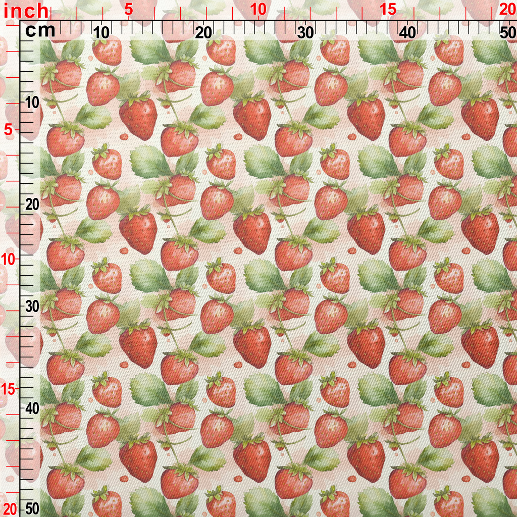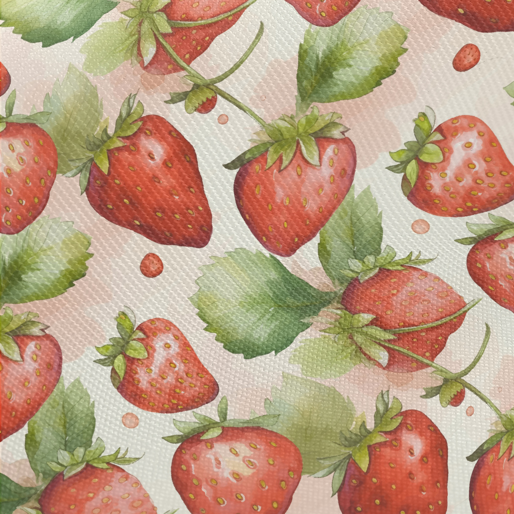 手繪寫熟成草莓厚棉布(幅寬150公分)