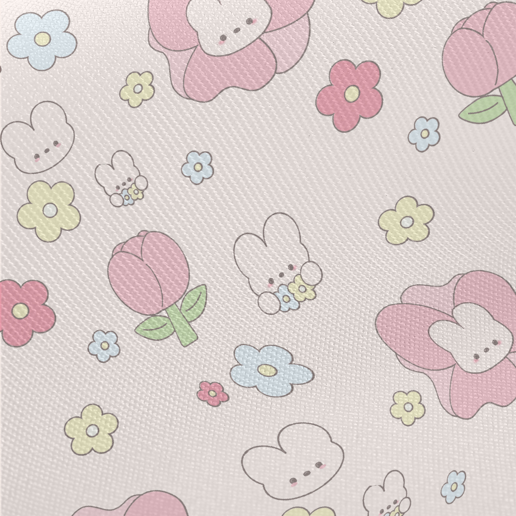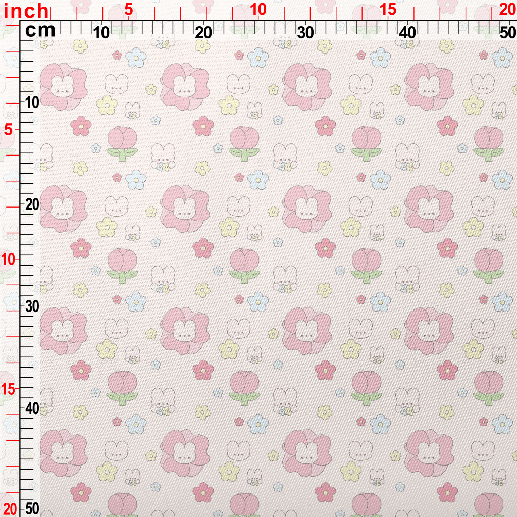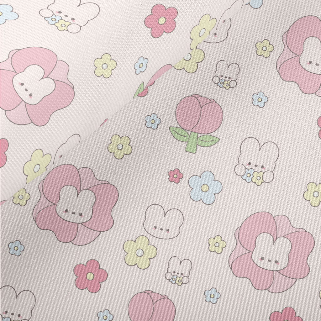 可愛兔子與花朵斜紋布(幅寬150公分)