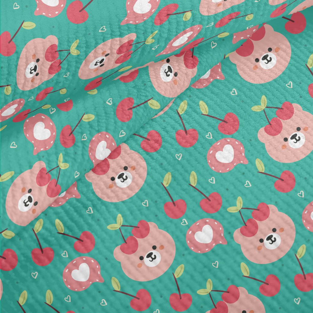 粉色小熊和櫻桃毛巾布(幅寬160公分)
