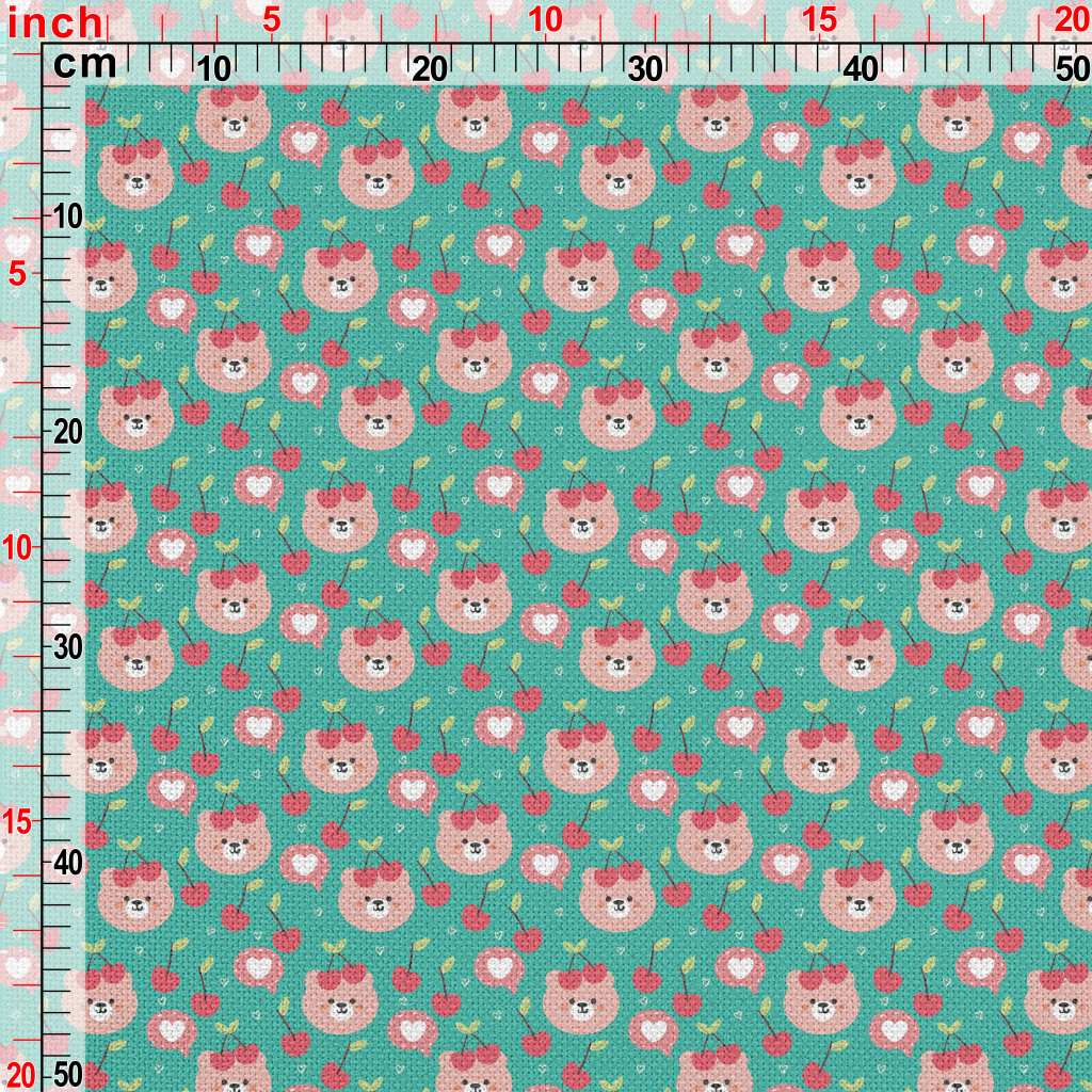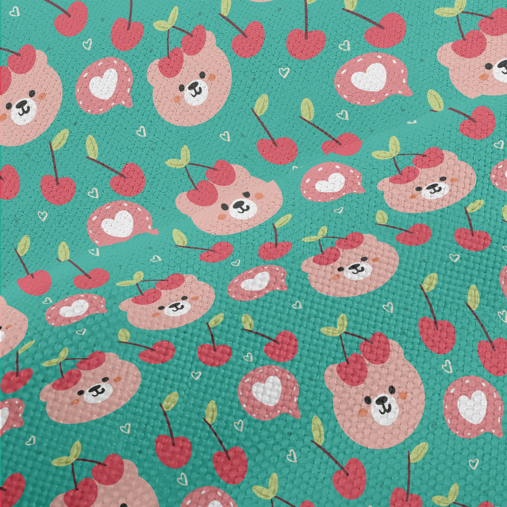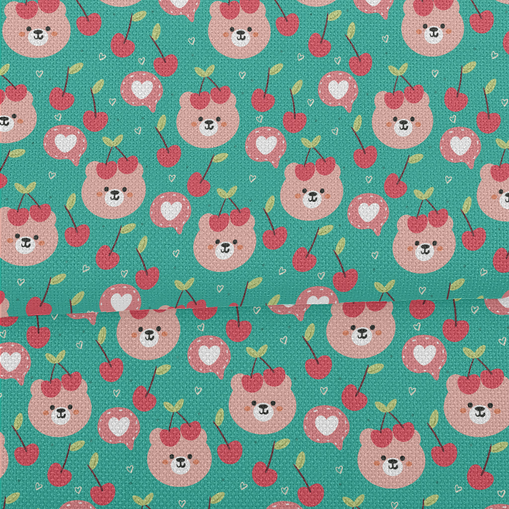 粉色小熊和櫻桃麻布(幅寬150公分)