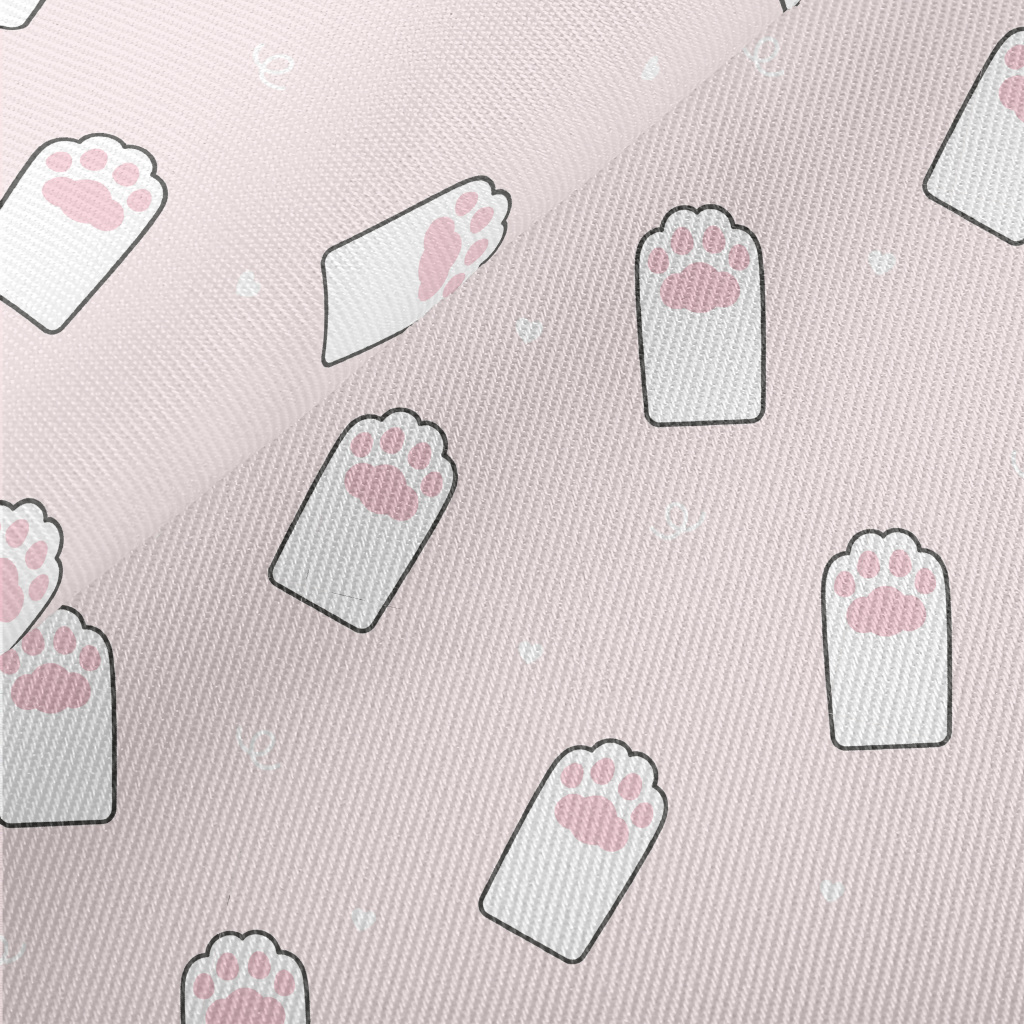 可愛白色貓掌與愛心斜紋布(幅寬150公分)