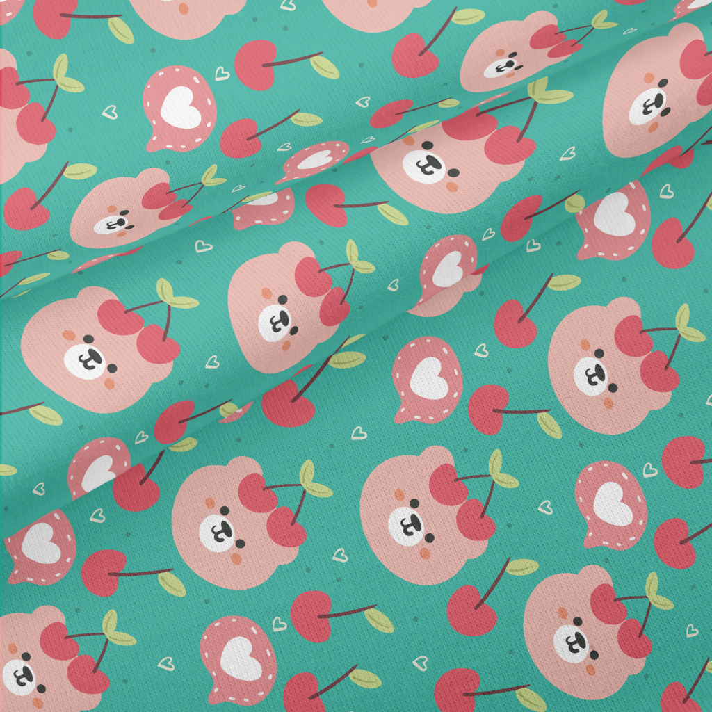 粉色小熊和櫻桃仿棉布(幅寬150公分)