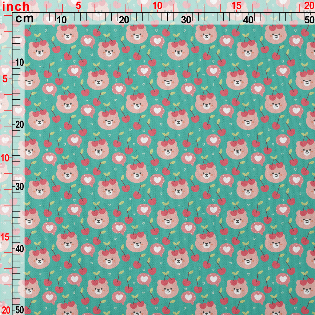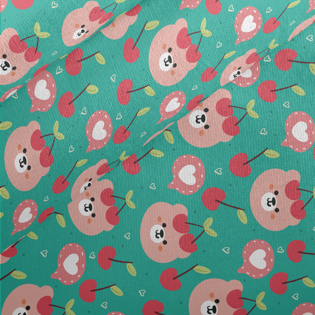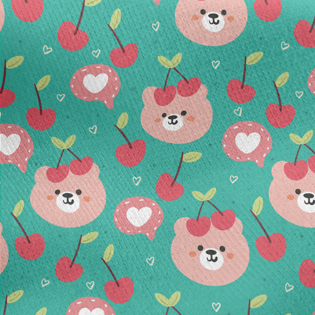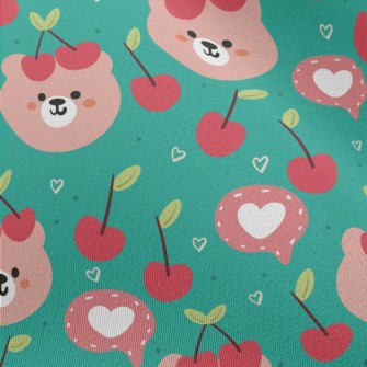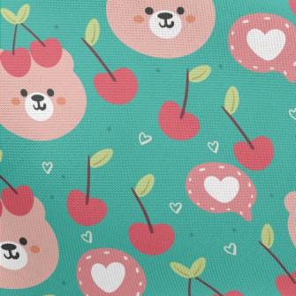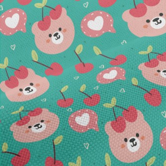 粉色小熊和櫻桃刷毛布(幅寬150公分)