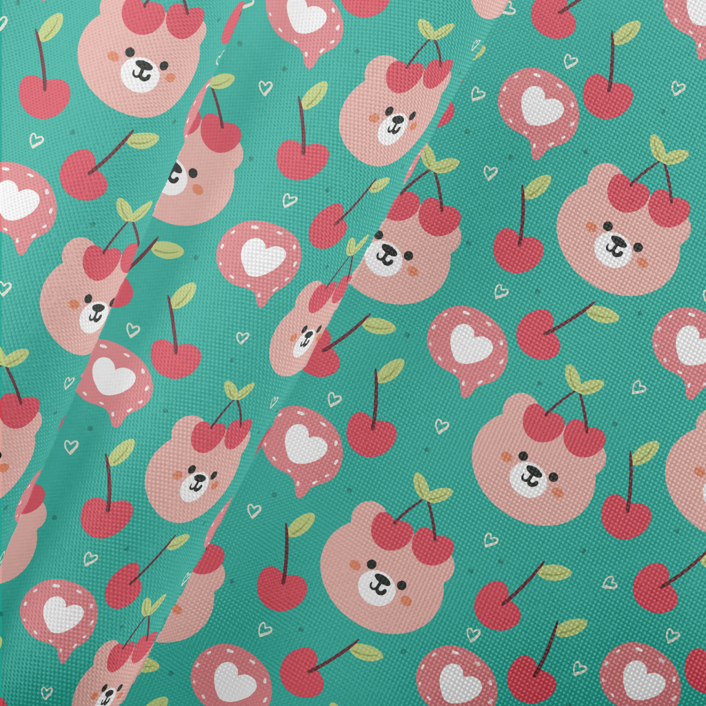 粉色小熊和櫻桃春亞紡(幅寬160公分)