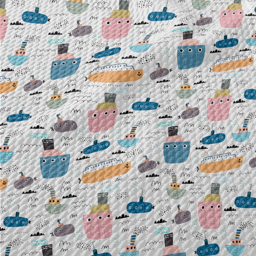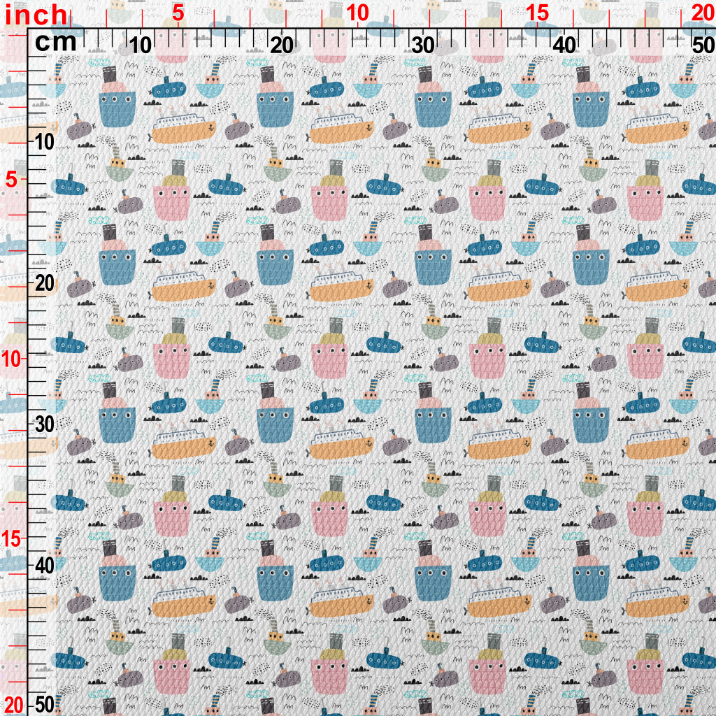 兒童塗鴉潛水艇與船隻泡泡布(幅寬160公分)
