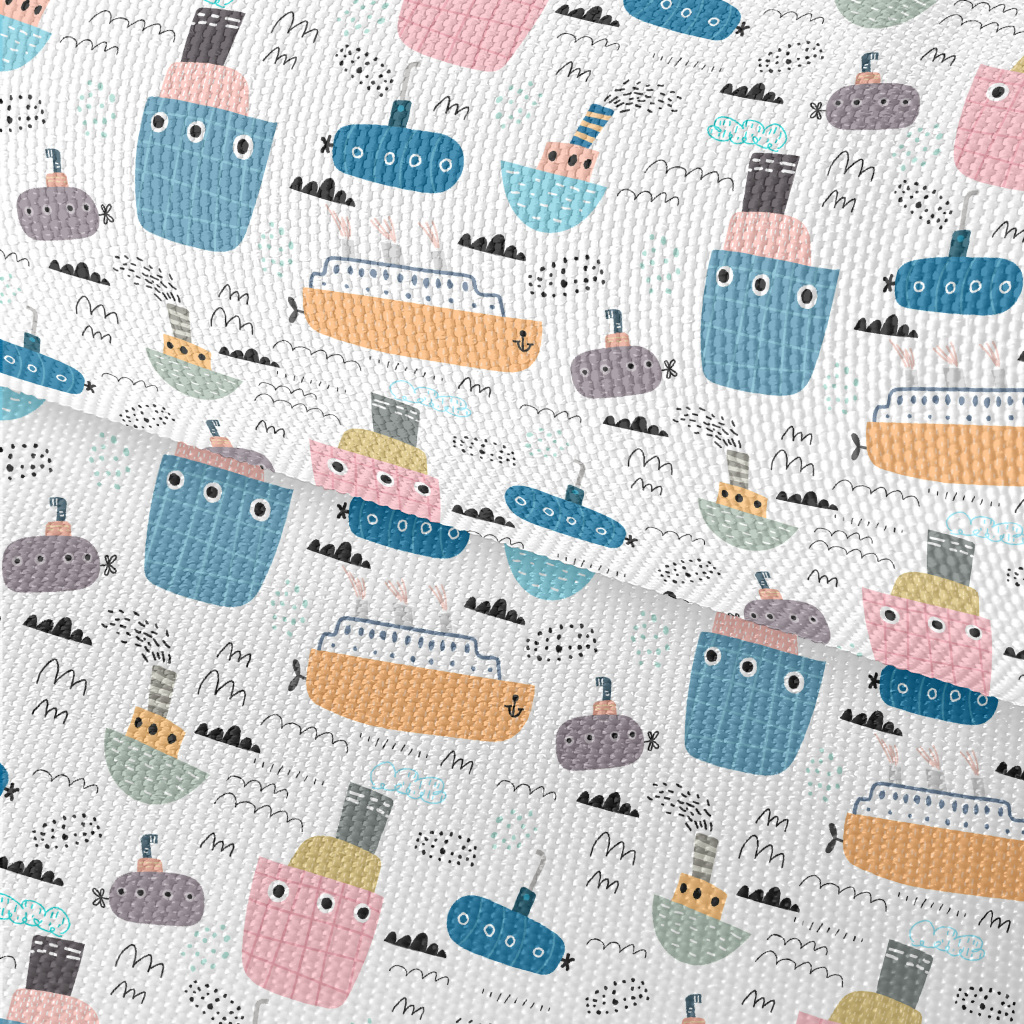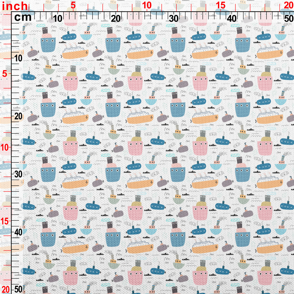 兒童塗鴉潛水艇與船隻牛津布(幅寬150公分)