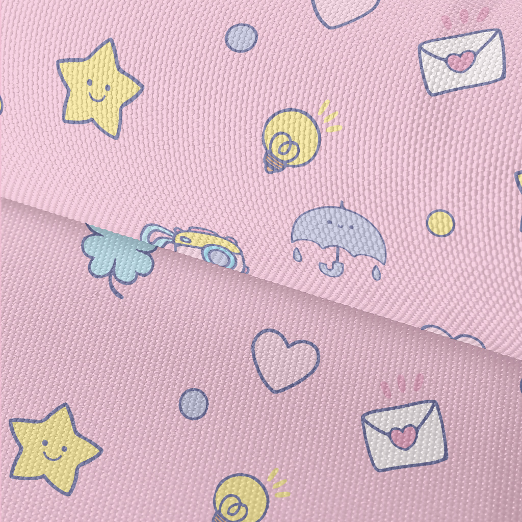 塗鴉愛心星星雨傘燈泡牛津布(幅寬150公分)