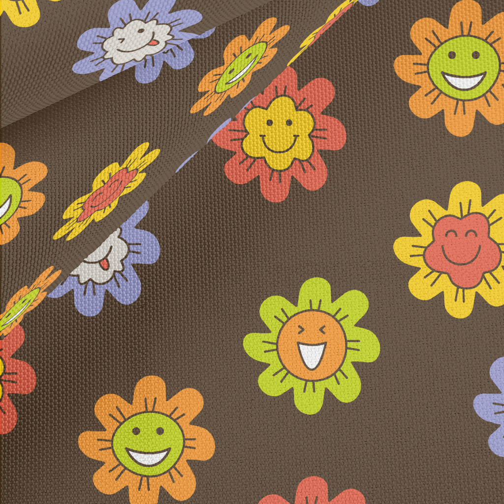 彩色有趣微笑花朵牛津布(幅寬150公分)