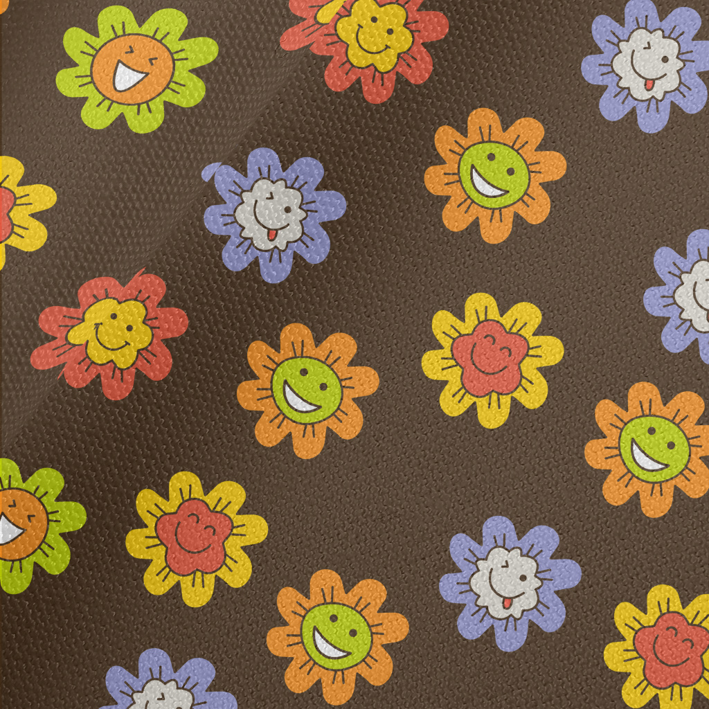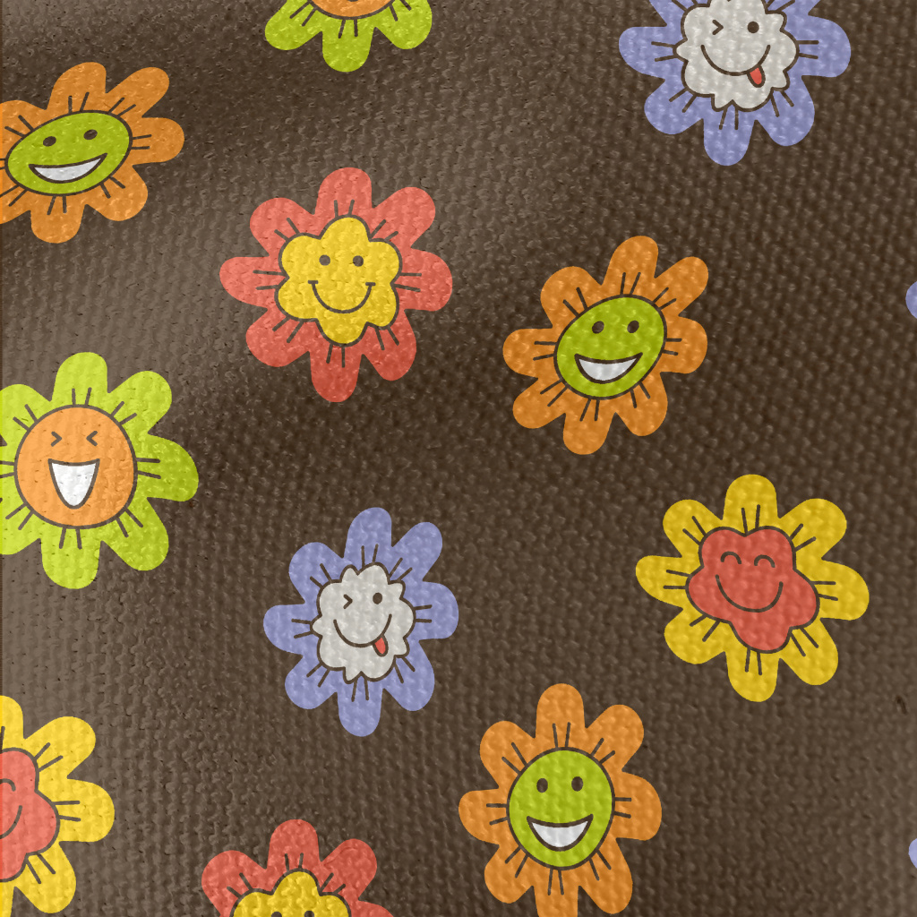 彩色有趣微笑花朵帆布(幅寬150公分)