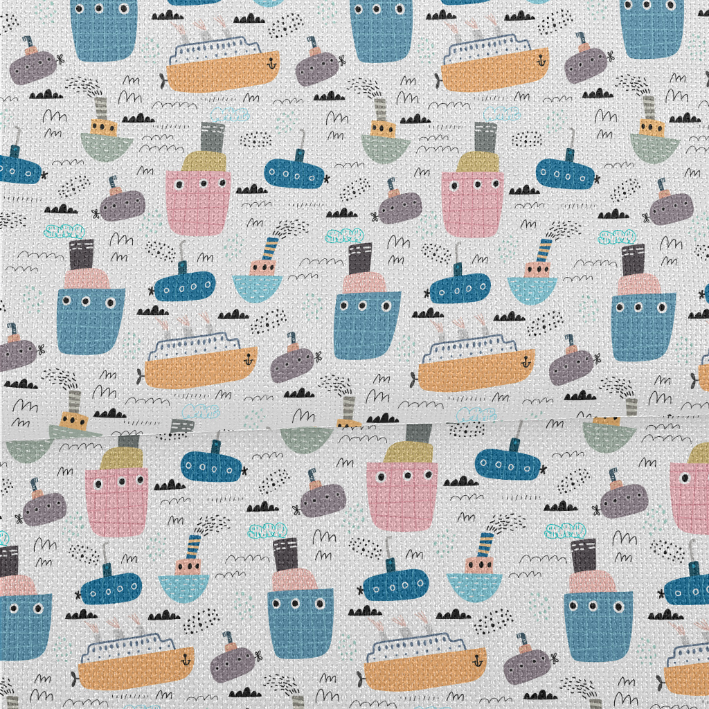 兒童塗鴉潛水艇與船隻麻布(幅寬150公分)
