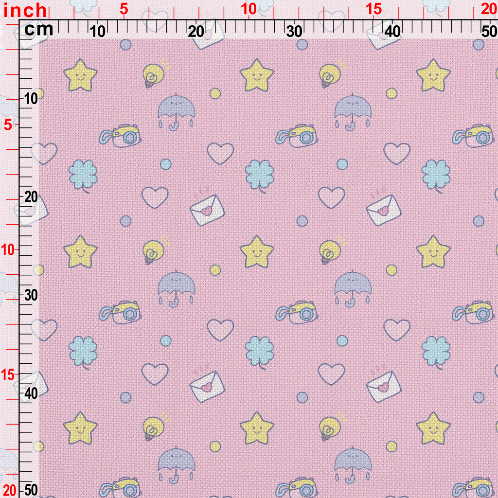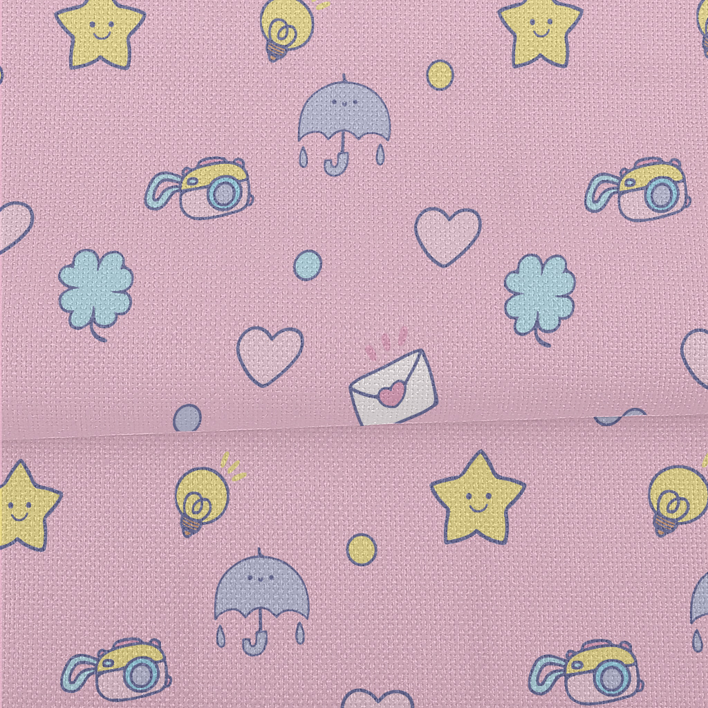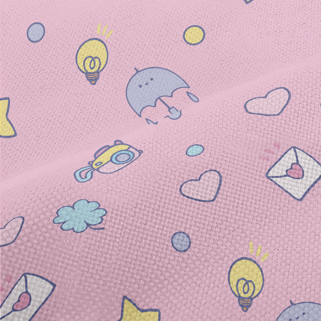 塗鴉愛心星星雨傘燈泡麻布(幅寬150公分)