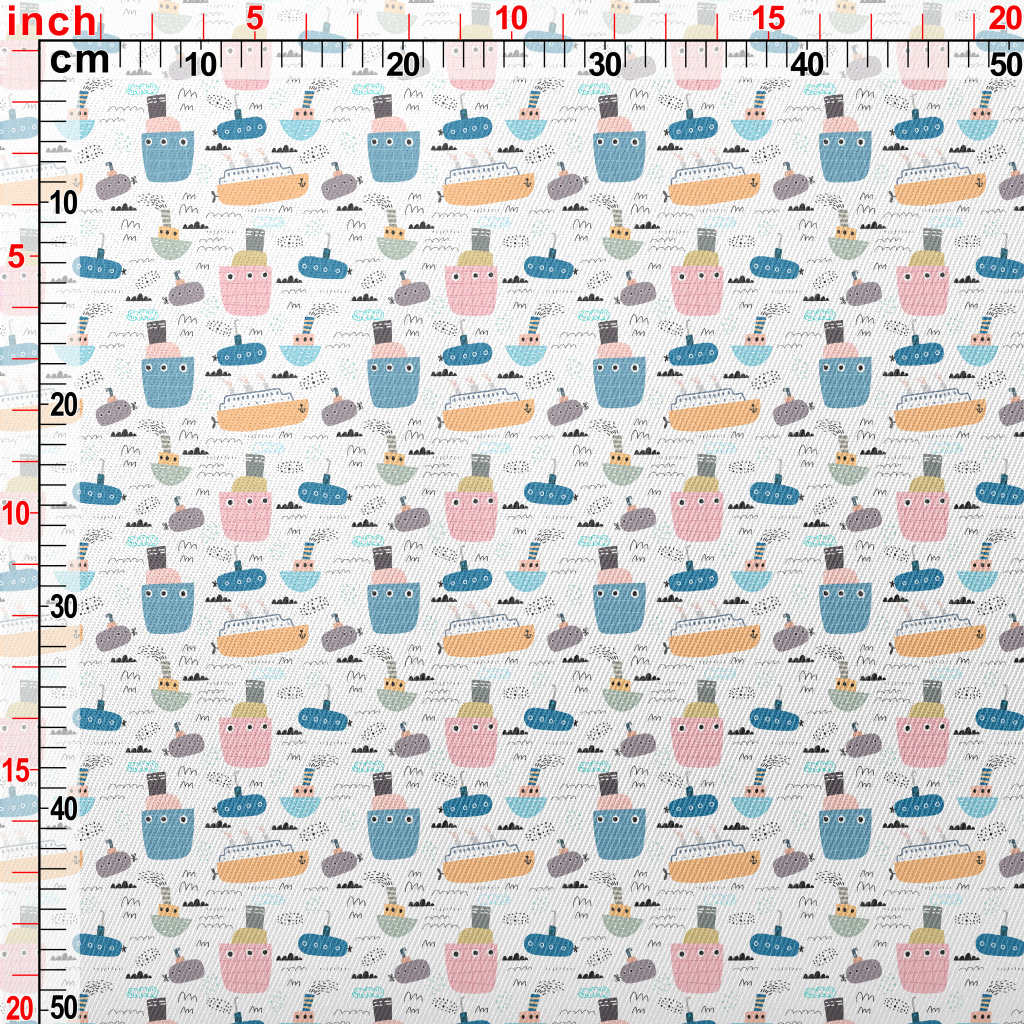 兒童塗鴉潛水艇與船隻斜紋布(幅寬150公分)