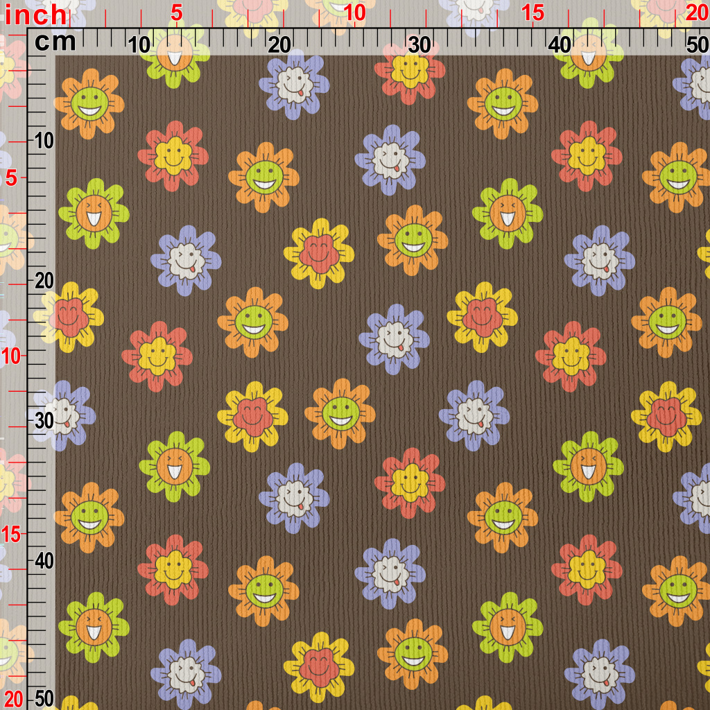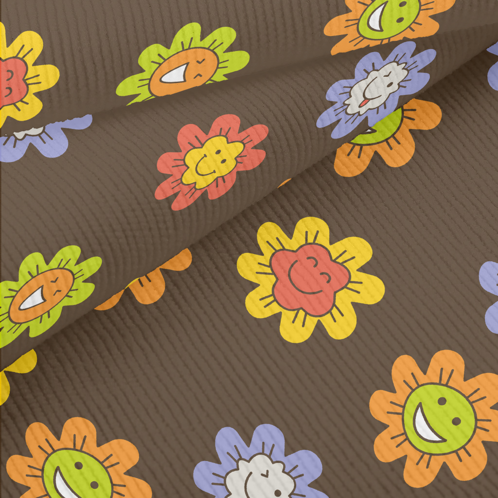 彩色有趣微笑花朵燈芯絨(幅寬150公分)