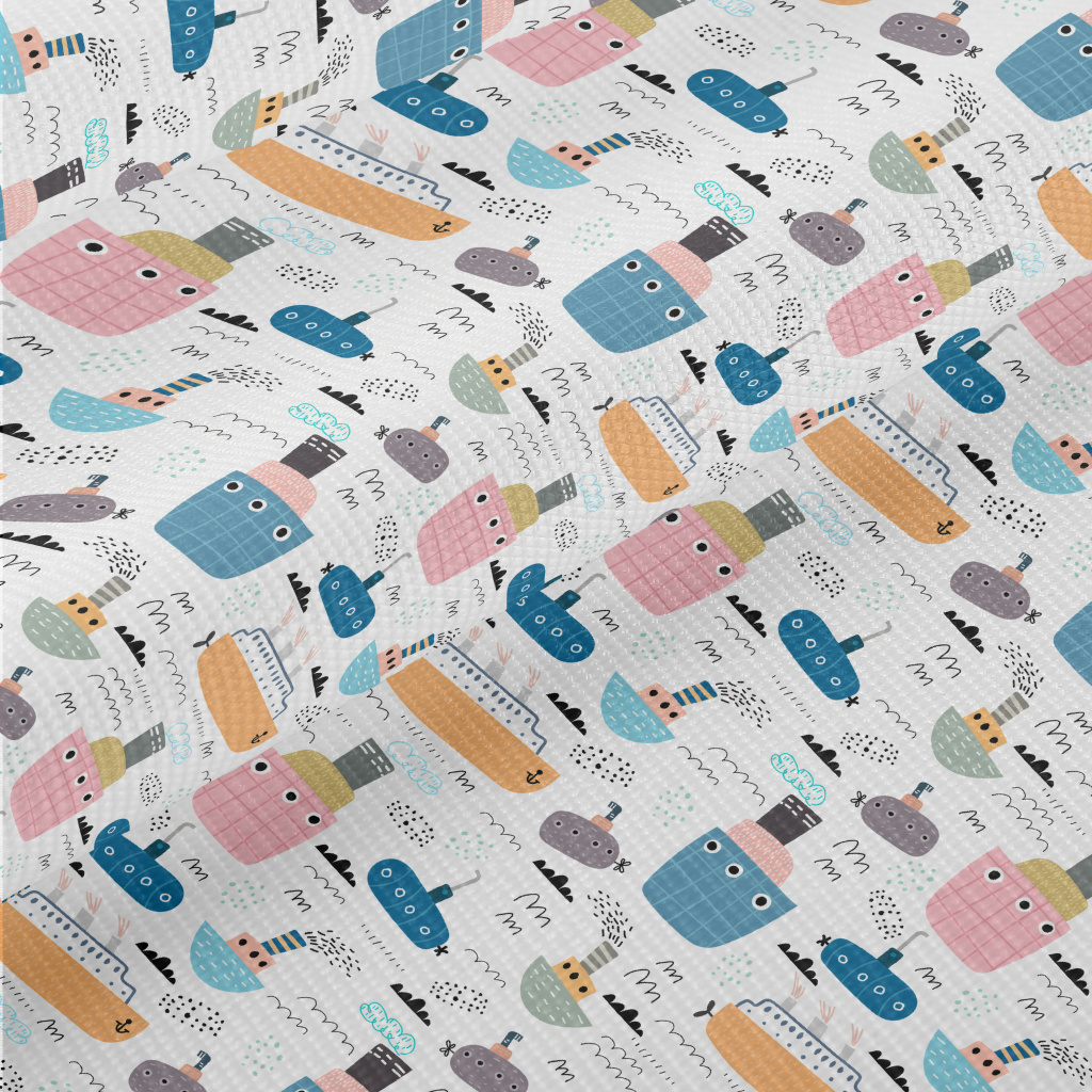 兒童塗鴉潛水艇與船隻雙斜布(幅寬150公分)