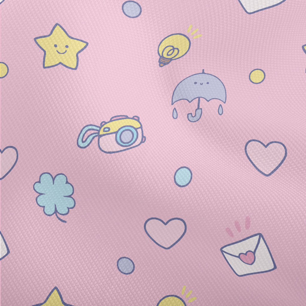 塗鴉愛心星星雨傘燈泡雙斜布(幅寬150公分)
