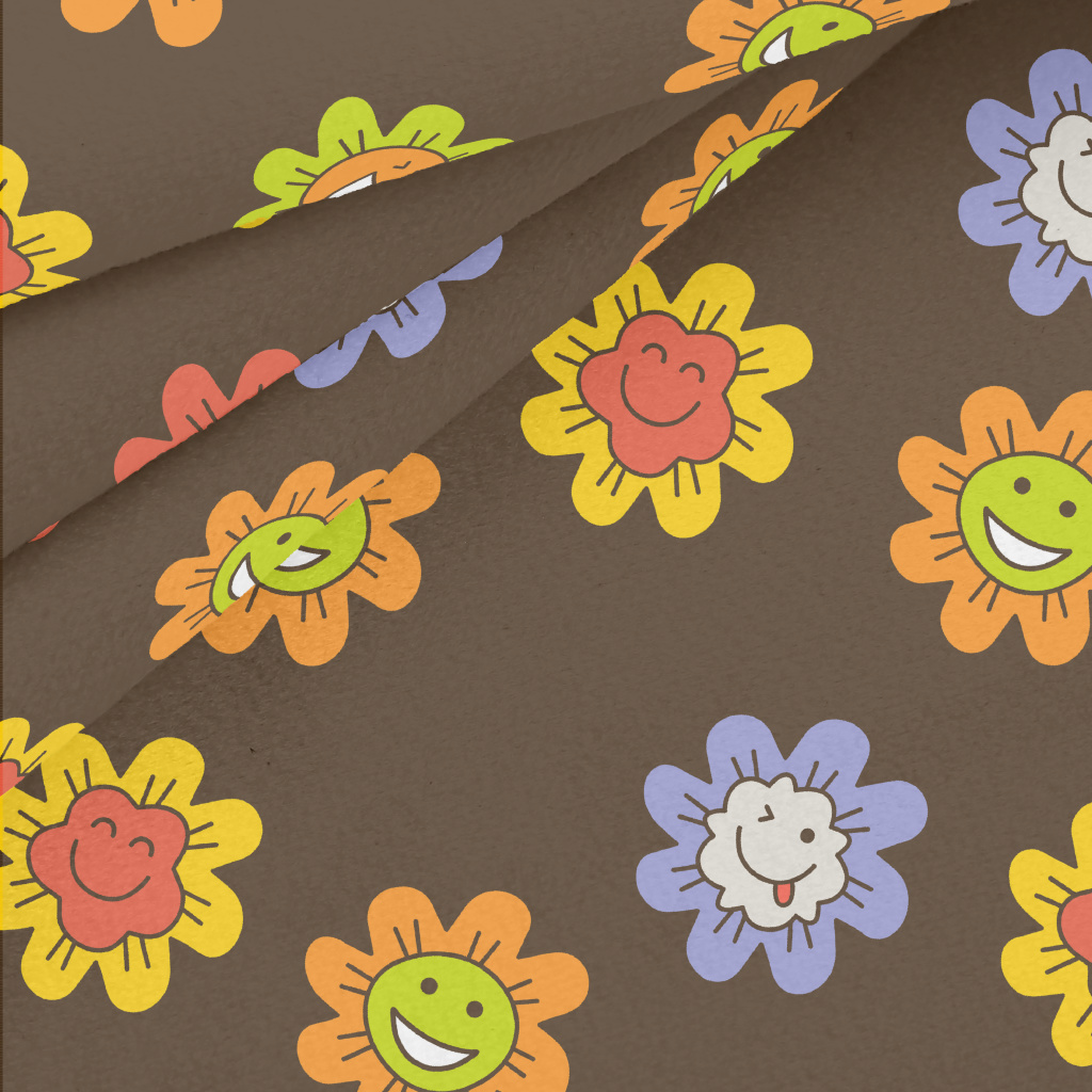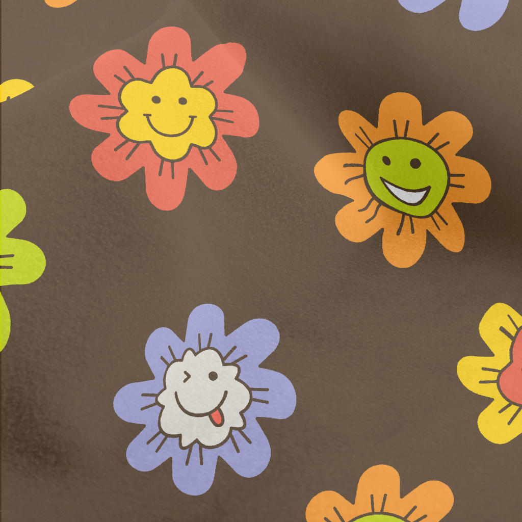 彩色有趣微笑花朵水晶絨(幅寬160公分)