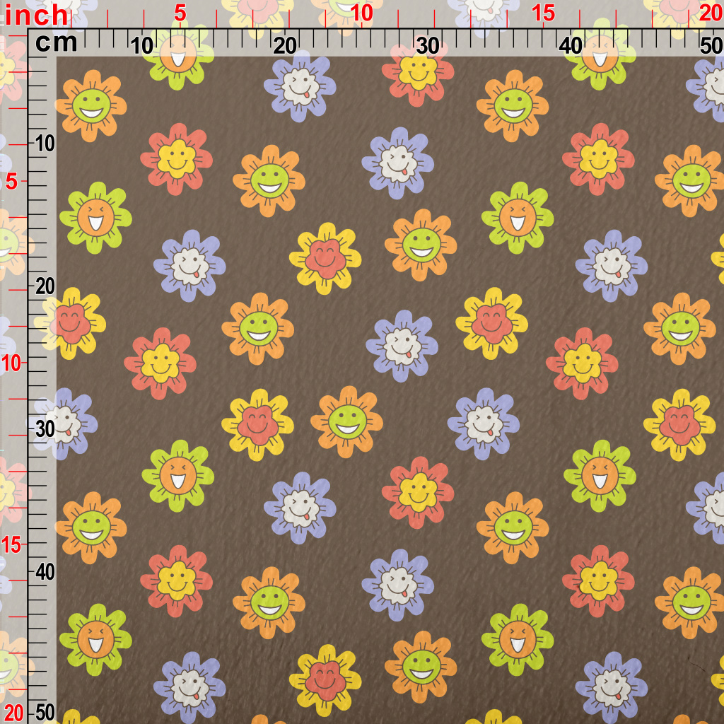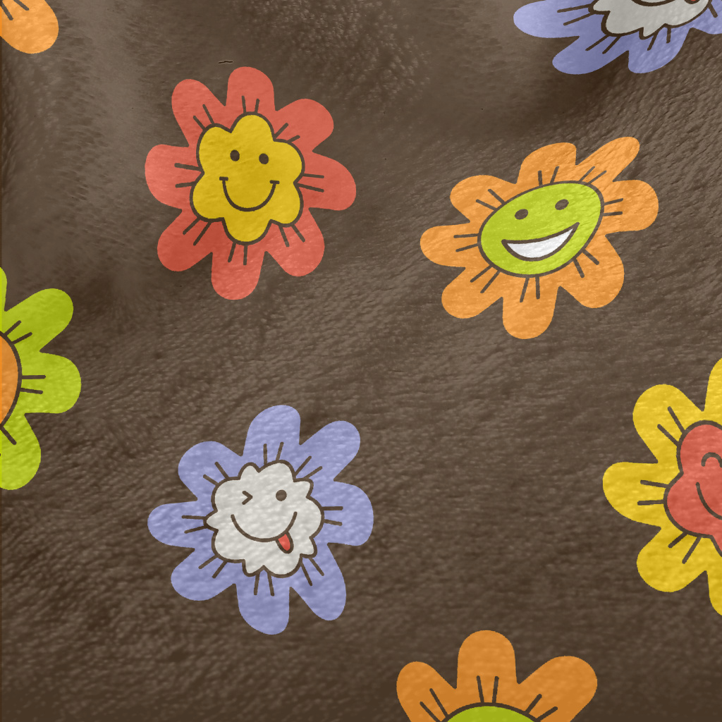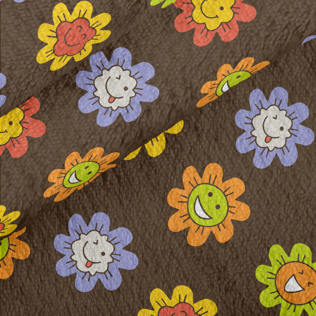 彩色有趣微笑花朵法蘭絨(幅寬150公分)