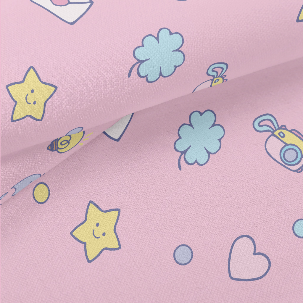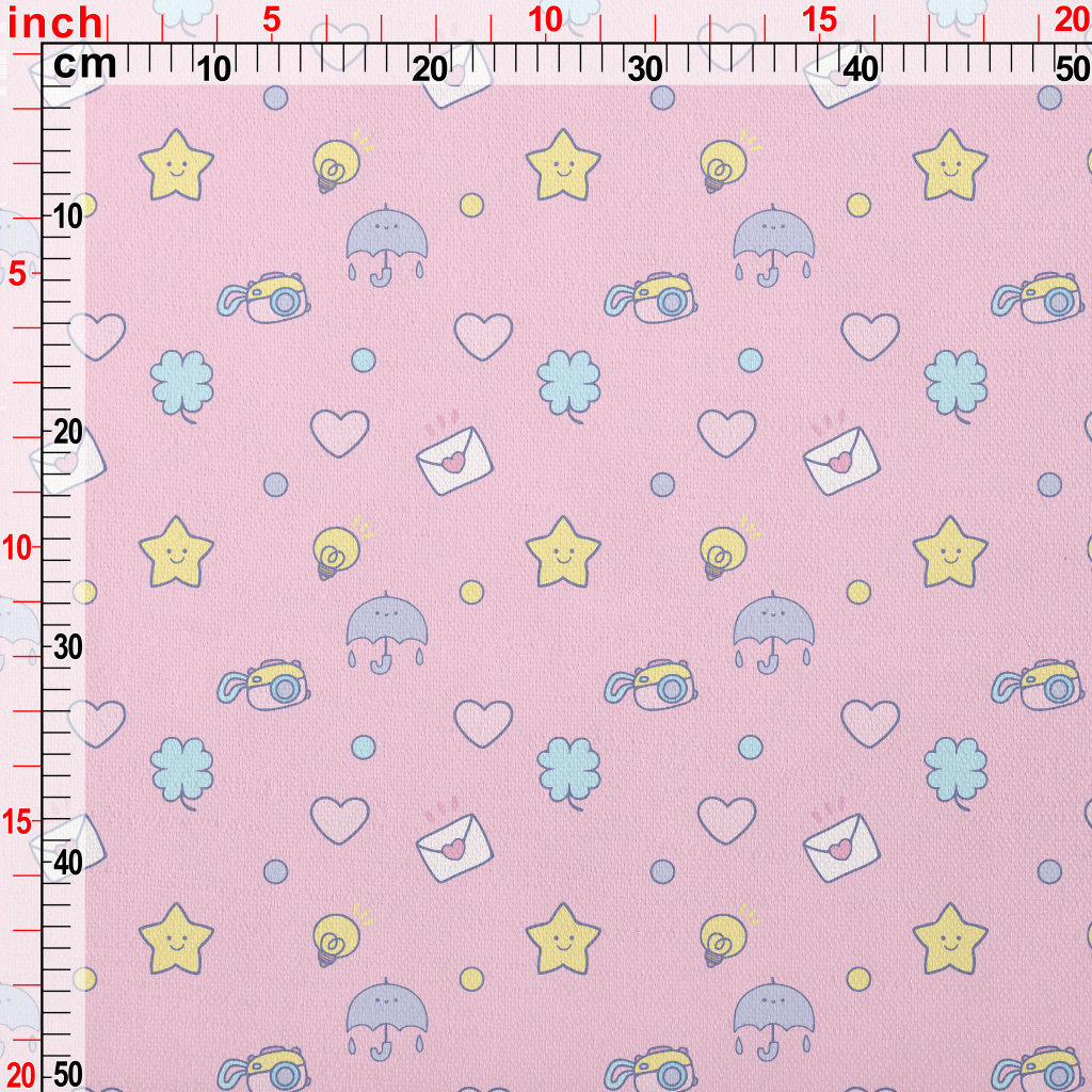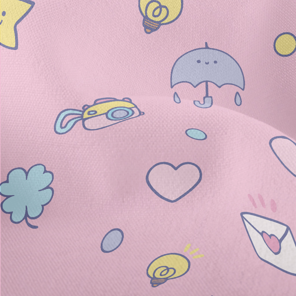 塗鴉愛心星星雨傘燈泡竹節麻(幅寬150公分)