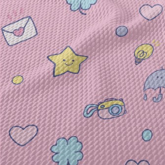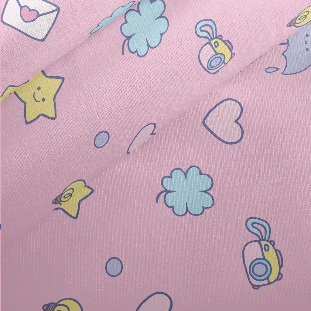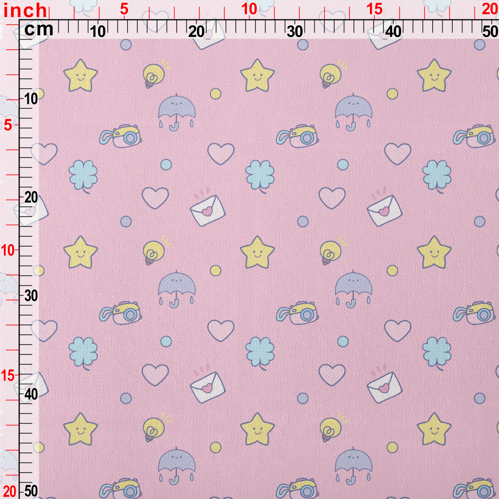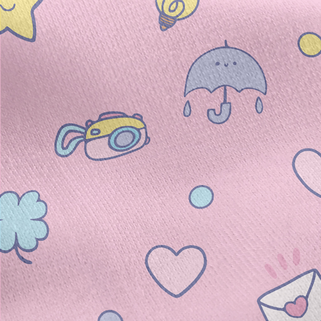 塗鴉愛心星星雨傘燈泡刷毛布(幅寬150公分)