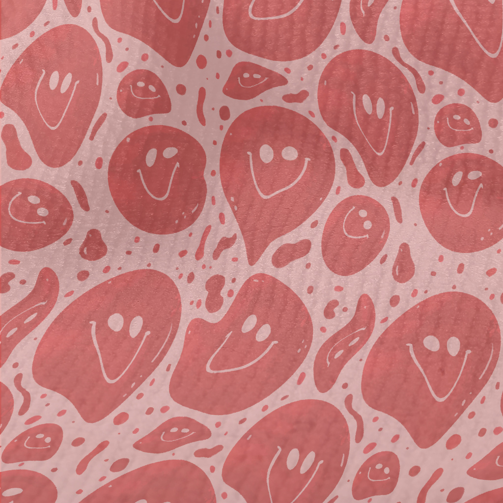 紅色扭曲微笑圖案毛巾布(幅寬160公分)