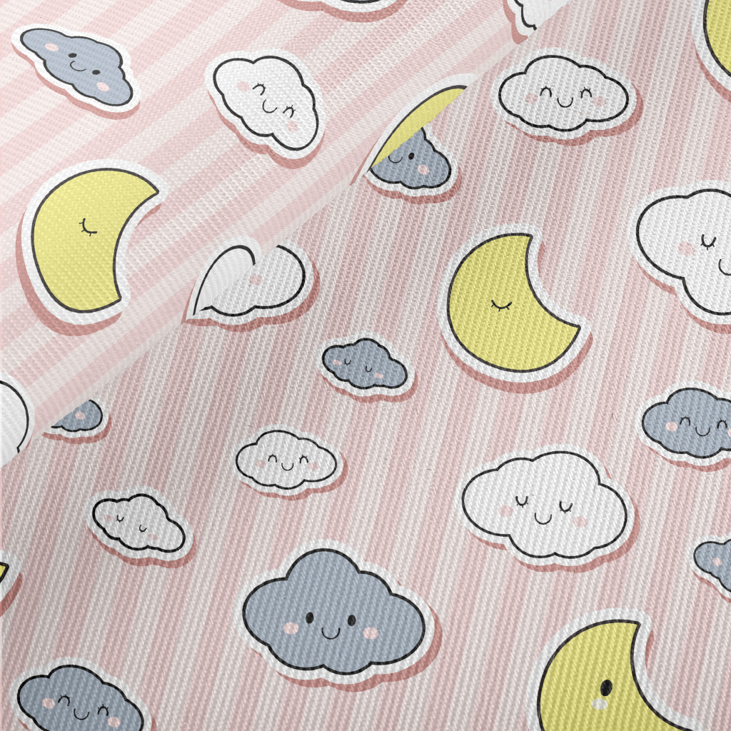 可愛月亮與雲朵斜紋布(幅寬150公分)
