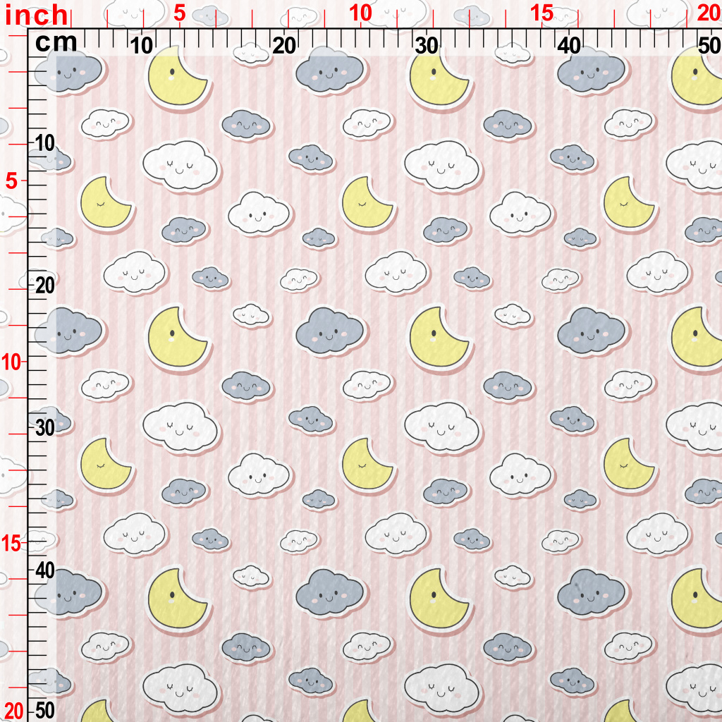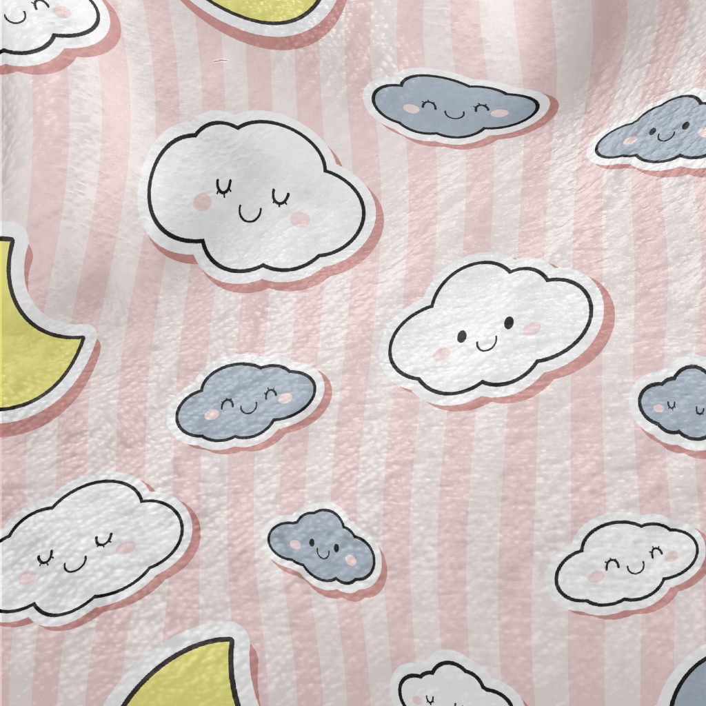 可愛月亮與雲朵法蘭絨(幅寬150公分)
