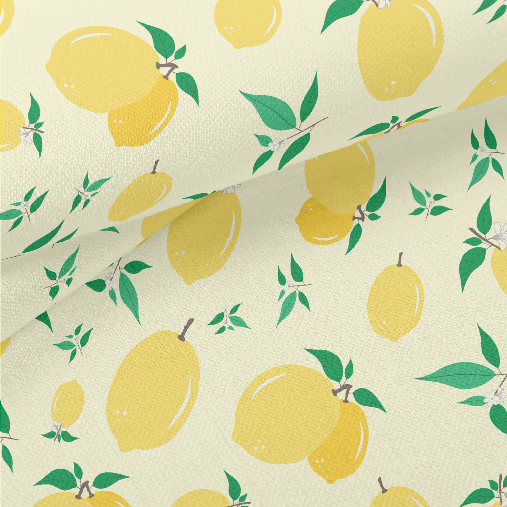 塗鴉黃色檸檬竹節麻(幅寬150公分)