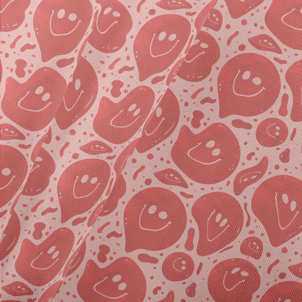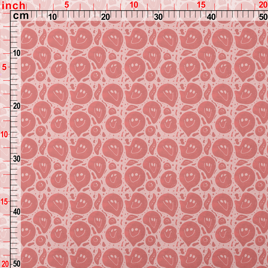 紅色扭曲微笑圖案春亞紡(幅寬160公分)