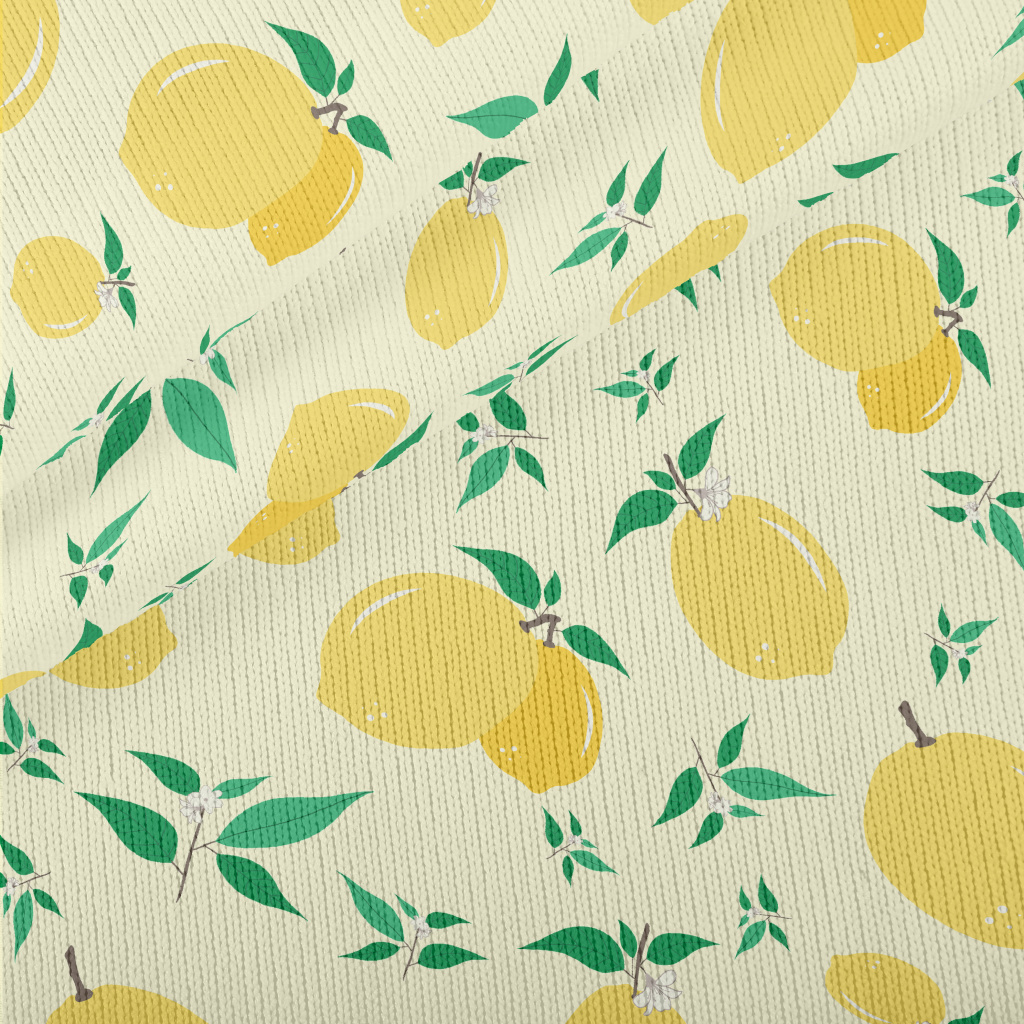 塗鴉黃色檸檬仿毛衣布(幅寬150公分)