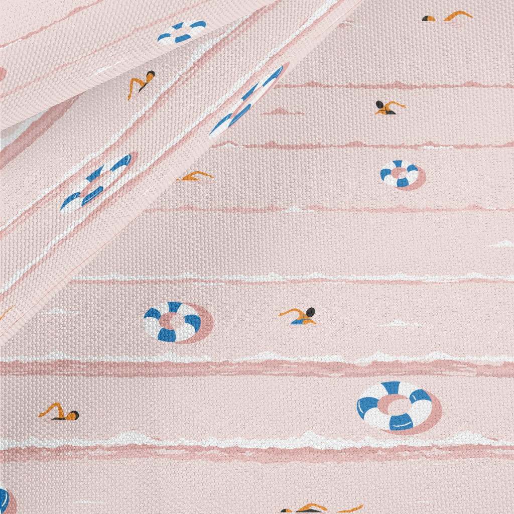 粉色夏日海浪與泳圈牛津布(幅寬150公分)